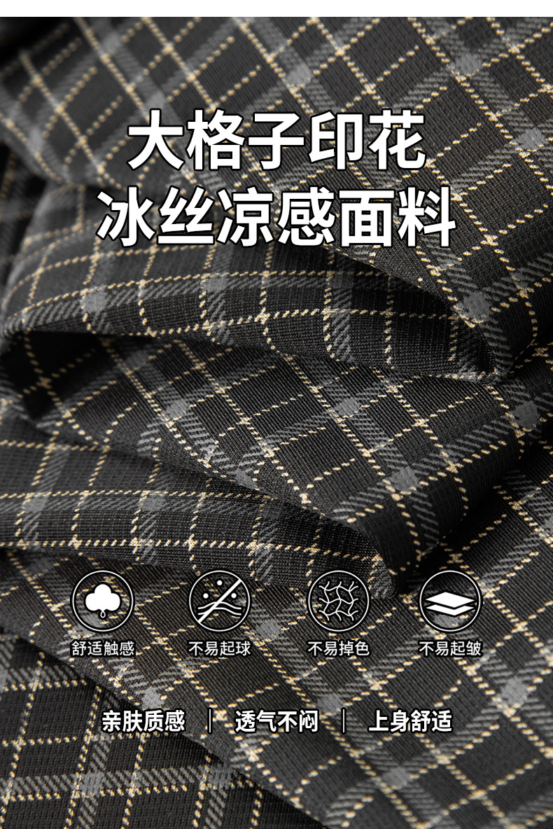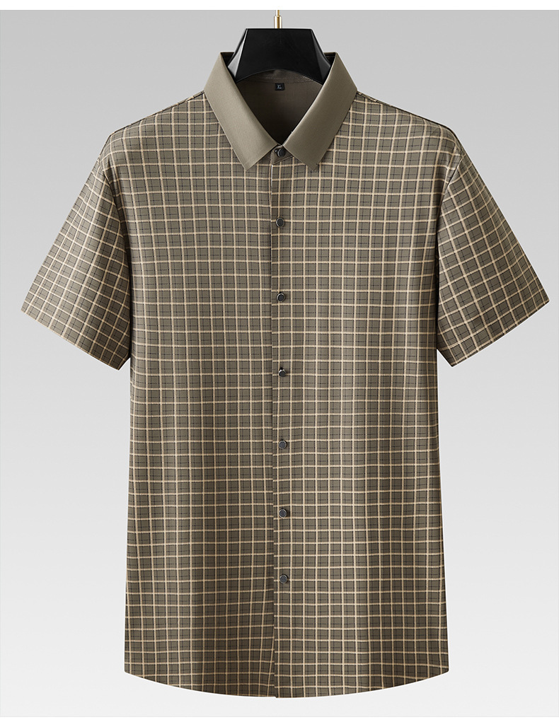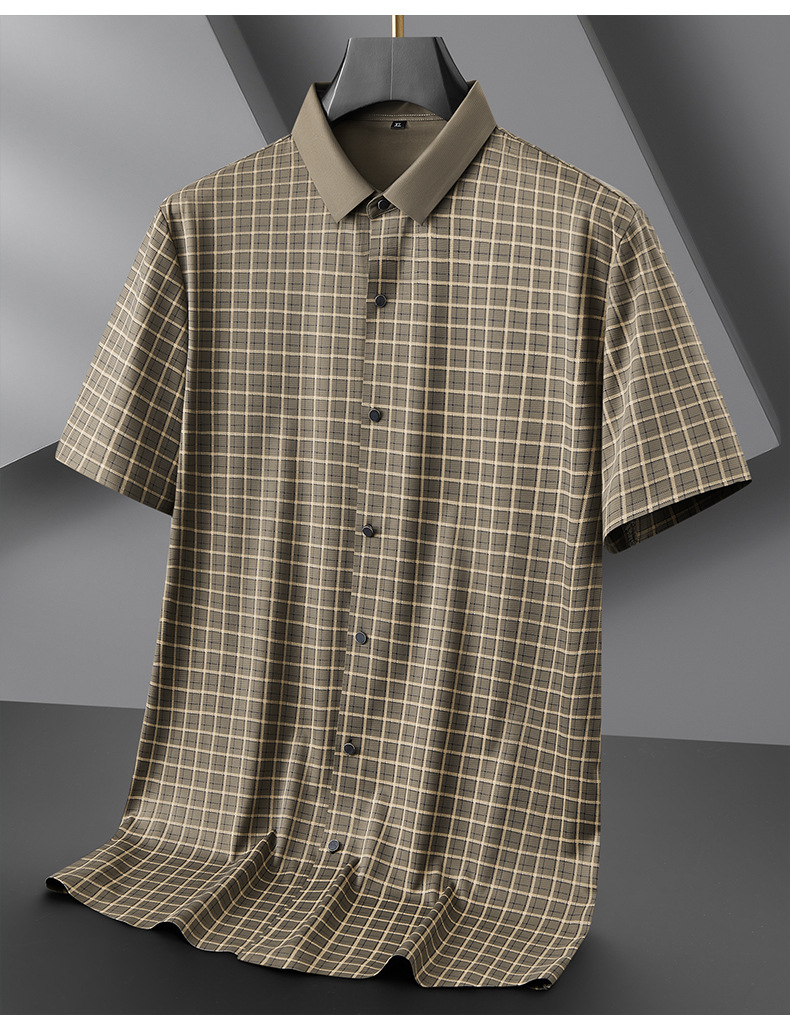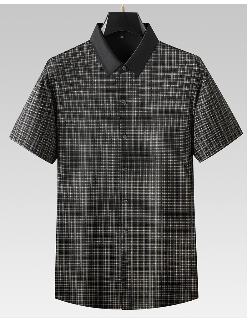 【冰丝】【DPF】大依优型大码短袖衬衫加肥大码格子半袖衬衣男士冰丝凉感夏装中年胖子上衣休闲商务