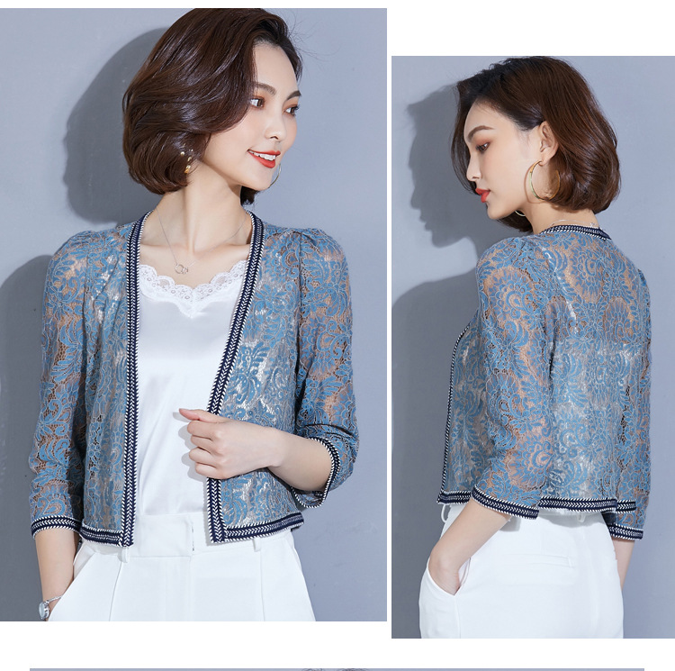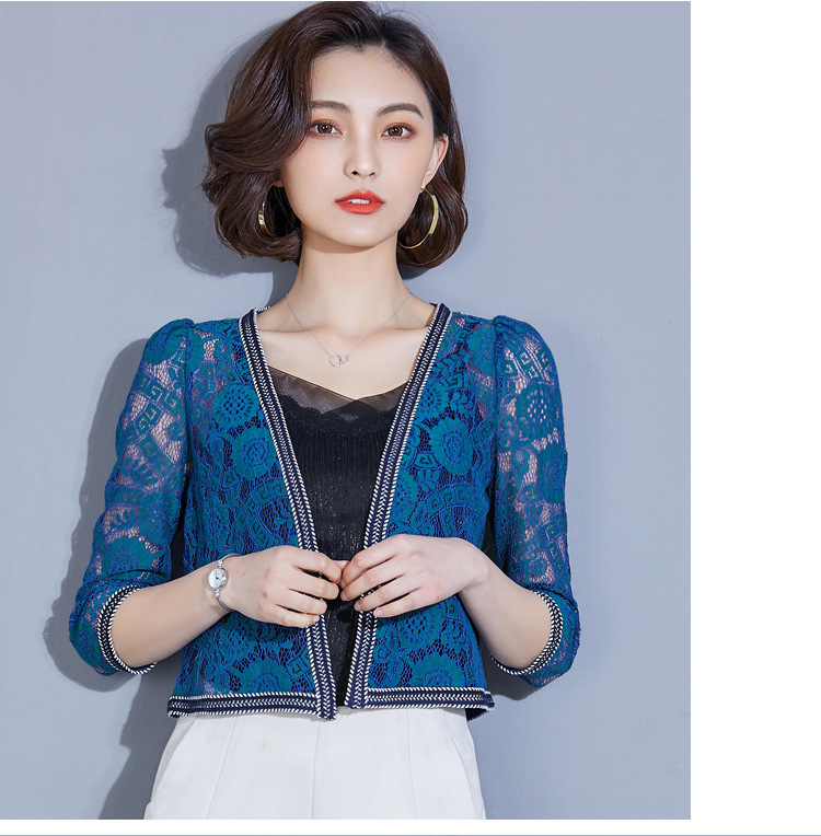 8005#实拍2018开衫蕾丝短外套空调衫小披肩女夏七分袖外皮百搭