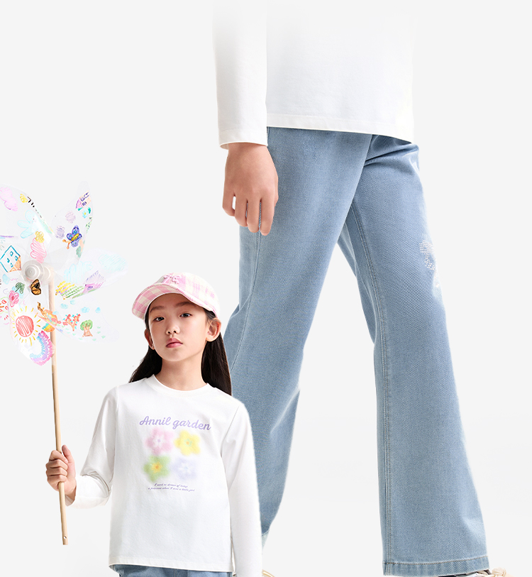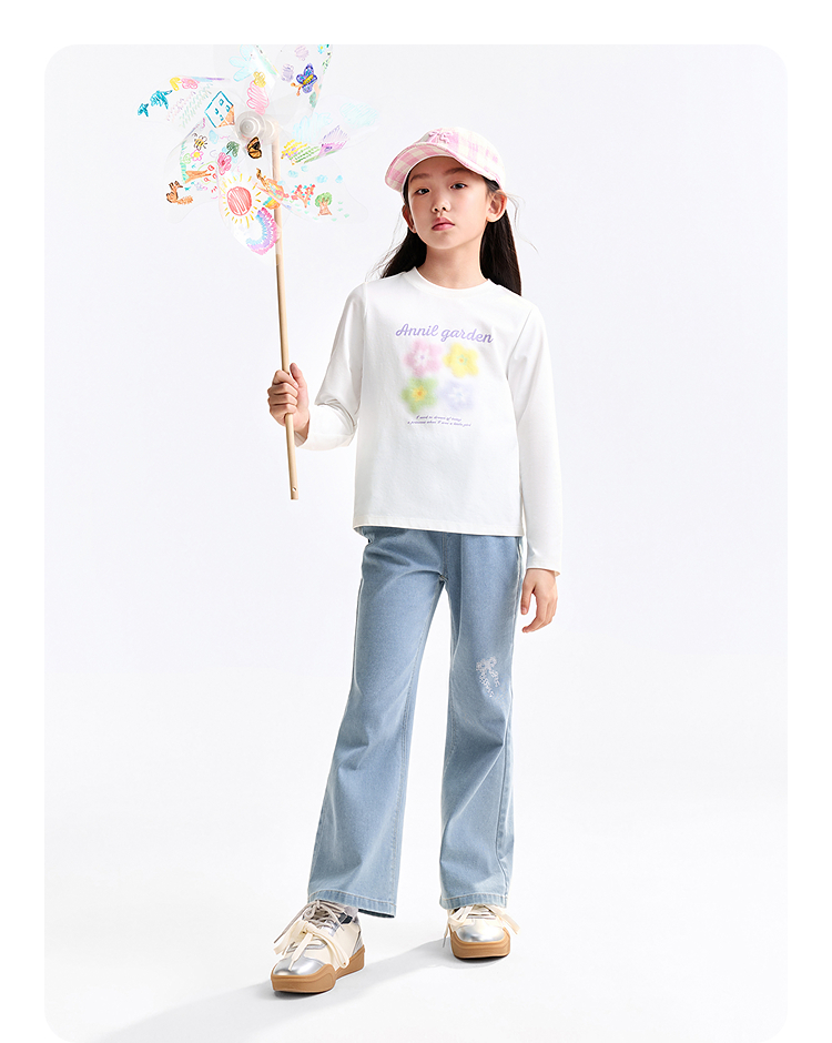 女童全腰牛仔单裤秋季新款安奈儿童装EG536505