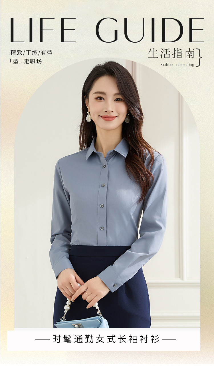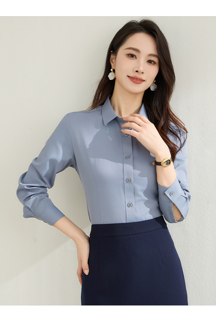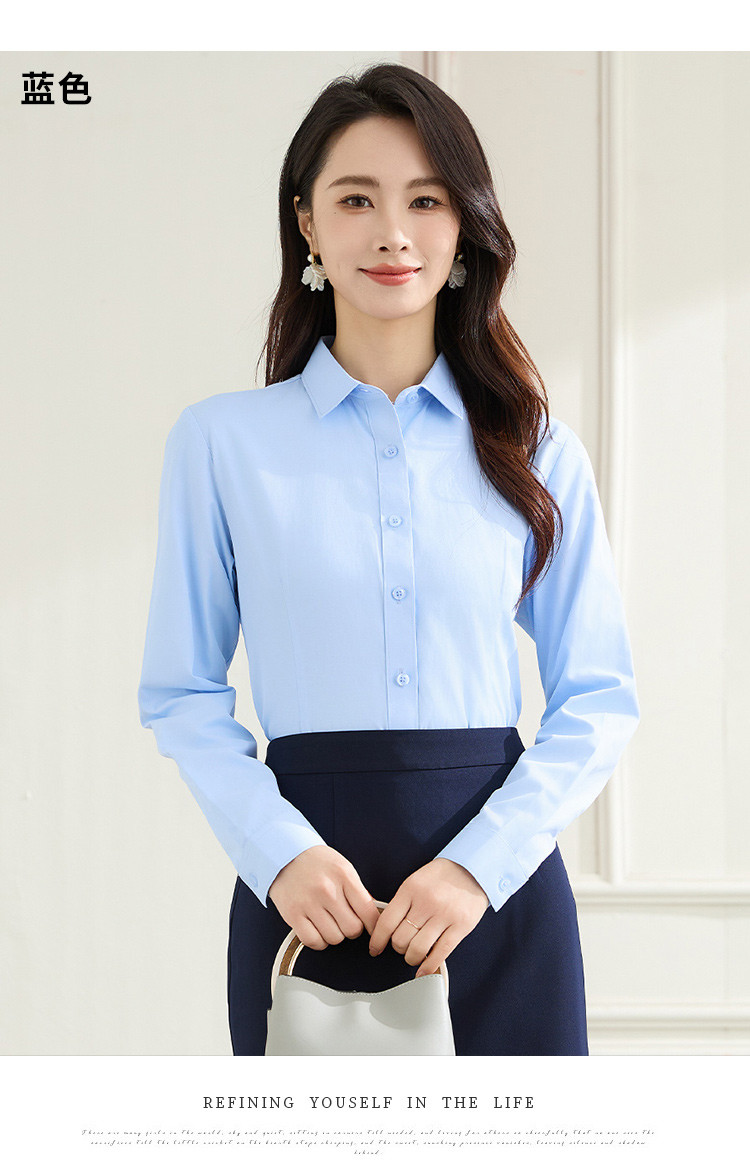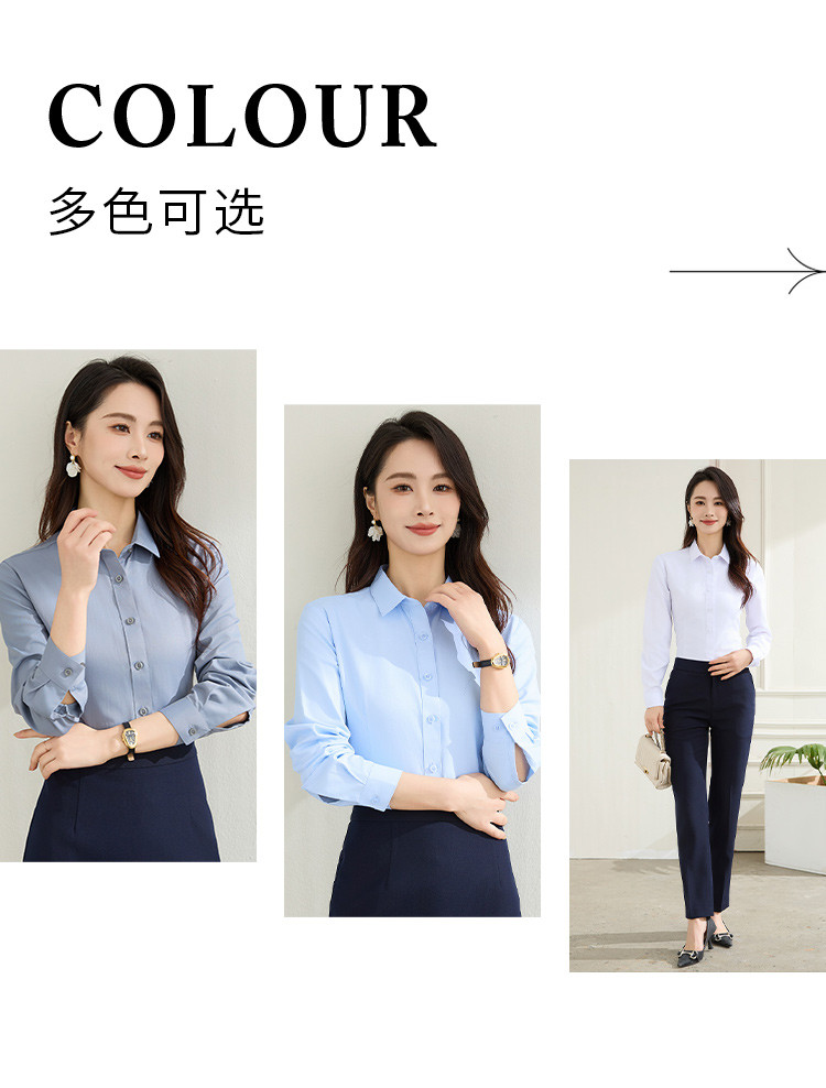 【棉混纺】罗蒙春秋长袖衬衫女士正装商务职业工装上班面试纯色衬衣女