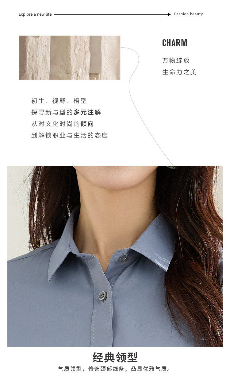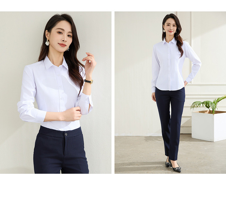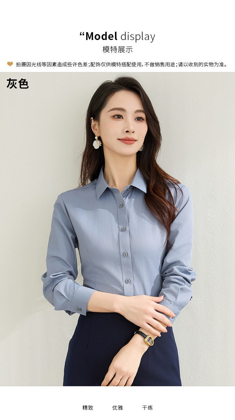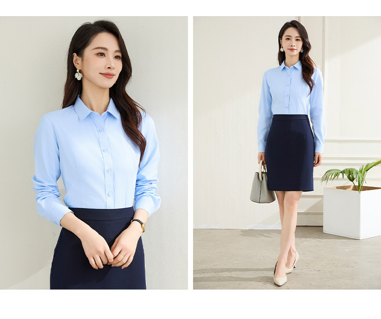 【棉混纺】罗蒙春秋长袖衬衫女士正装商务职业工装上班面试纯色衬衣女