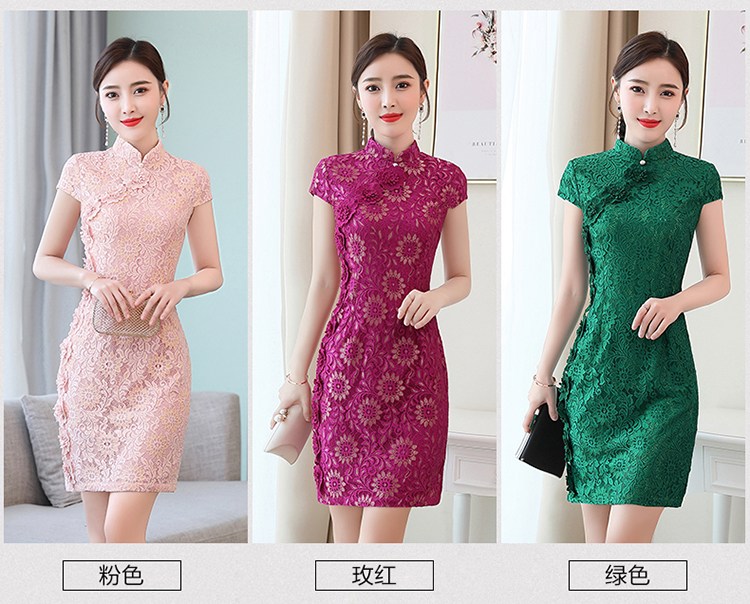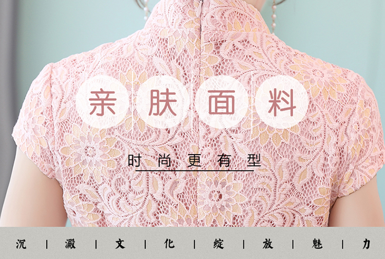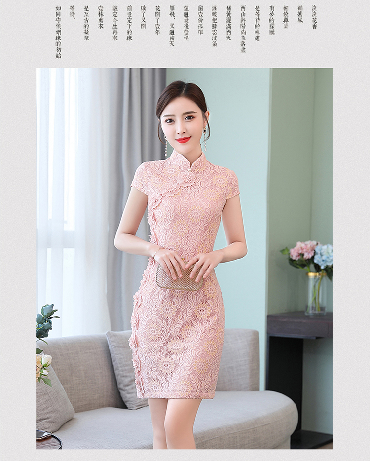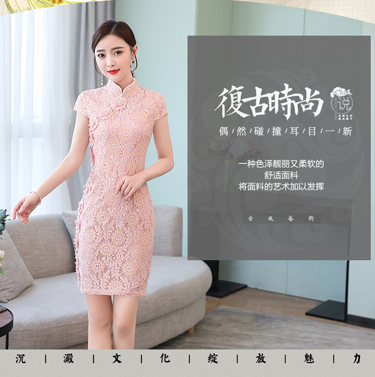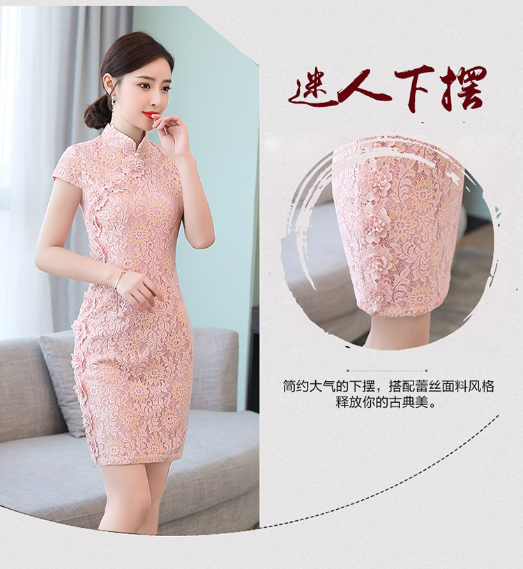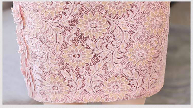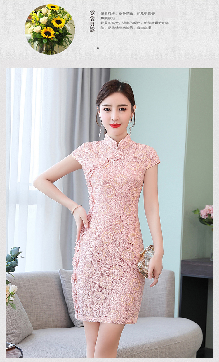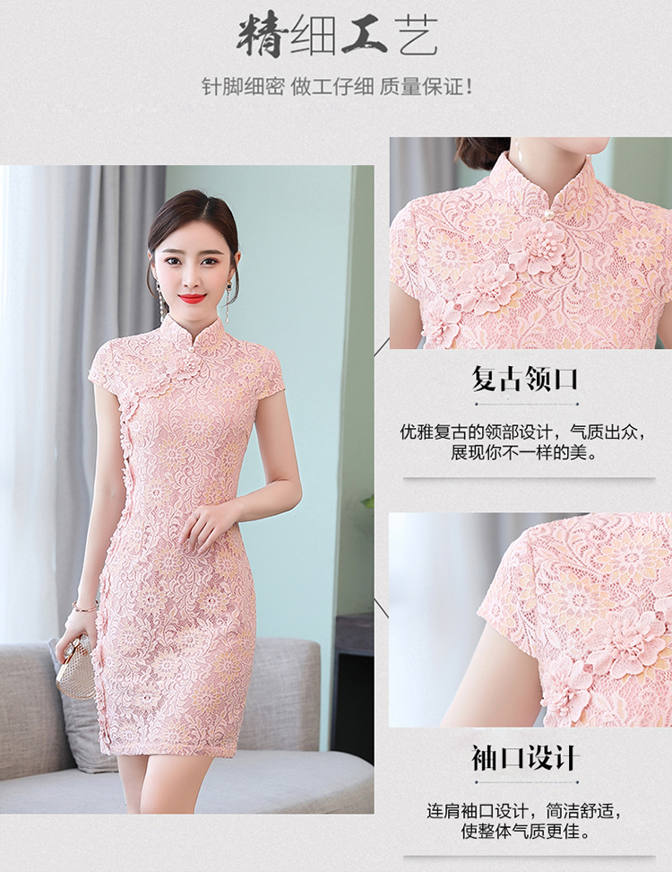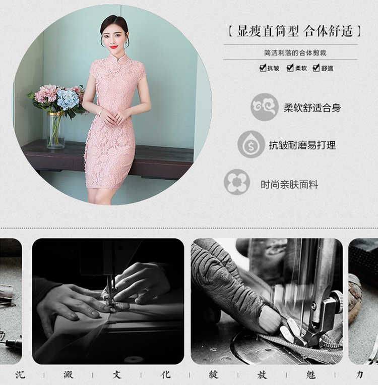 WZNH-YBX5887夏季时尚蕾丝通勤中腰常规单件短袖连衣裙