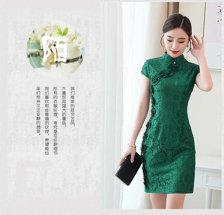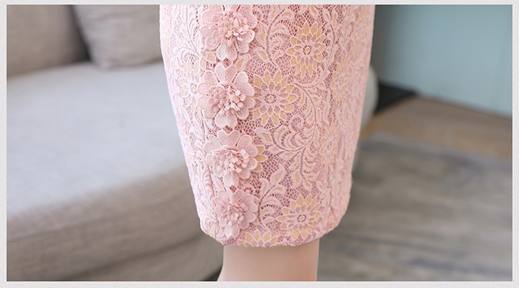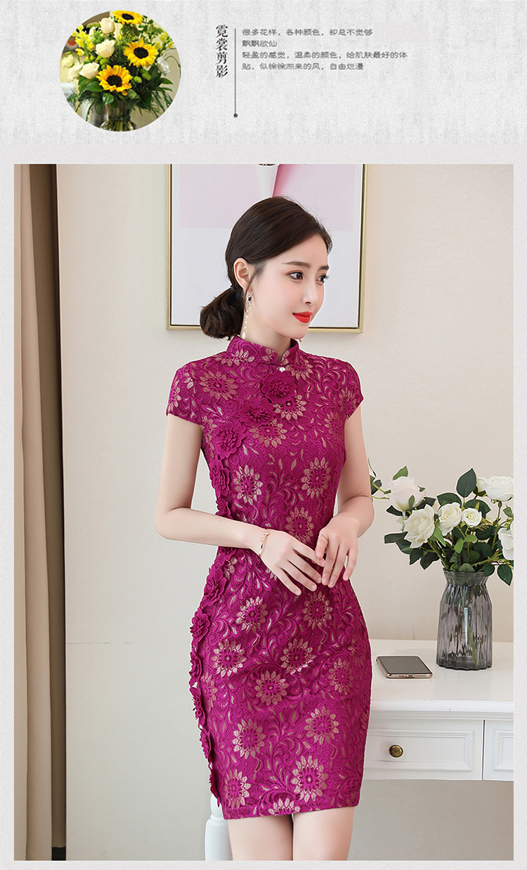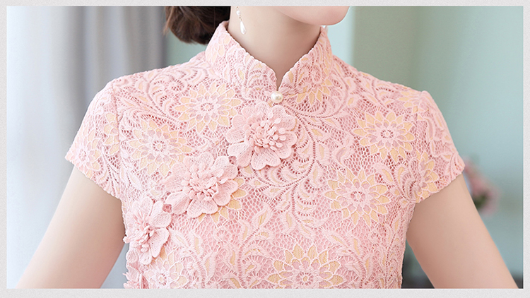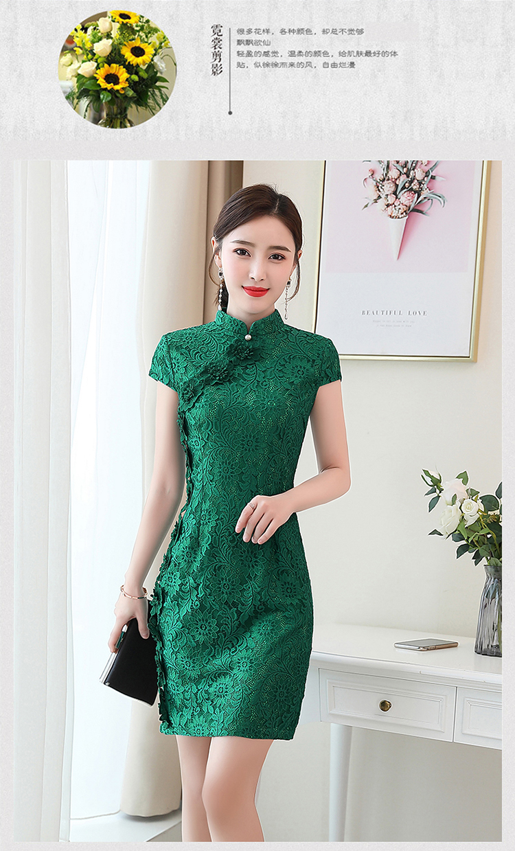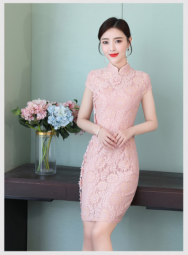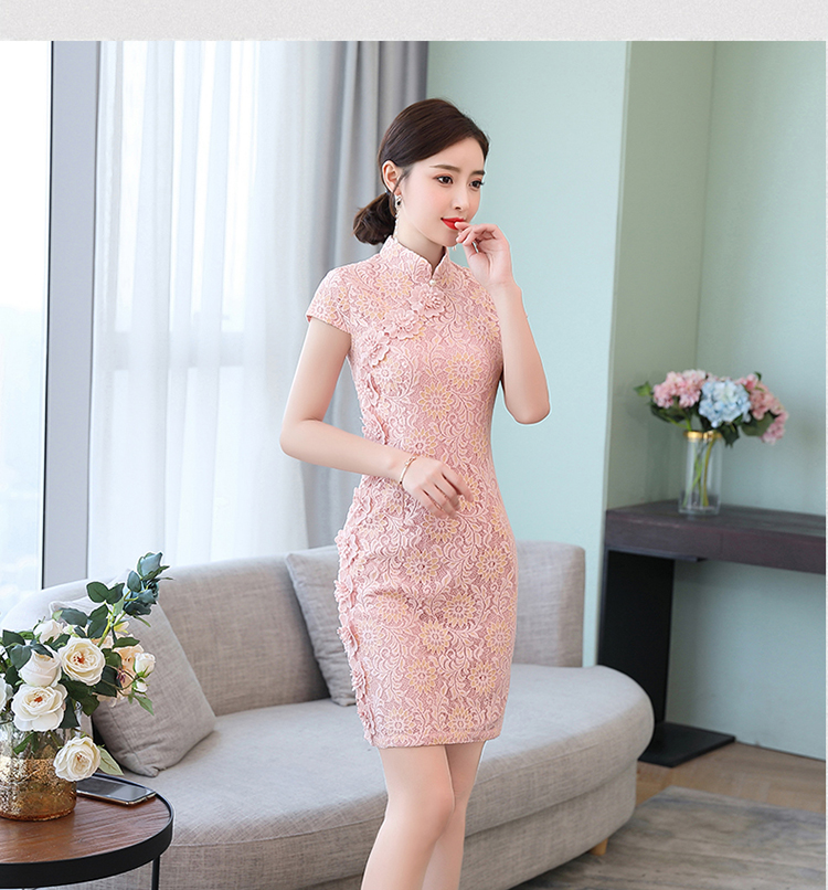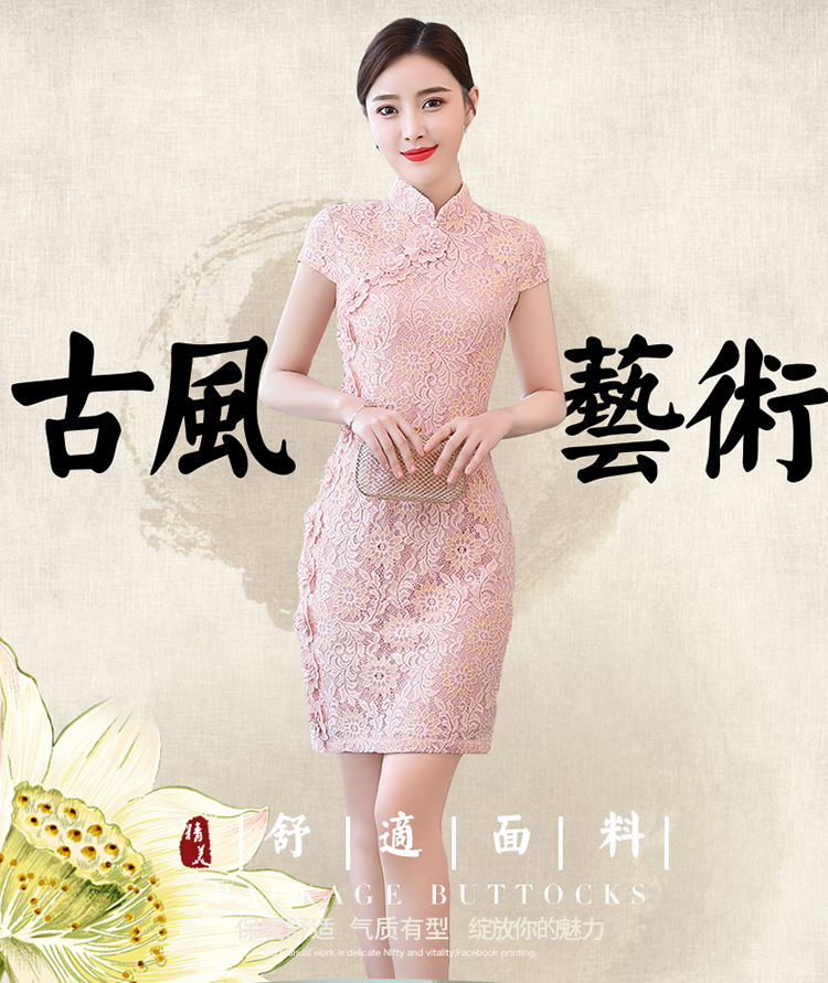 WZNH-YBX5887夏季时尚蕾丝通勤中腰常规单件短袖连衣裙