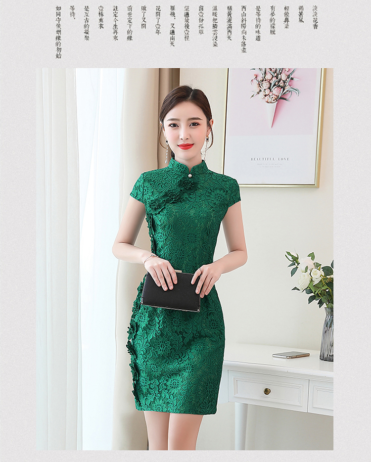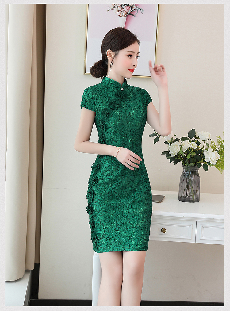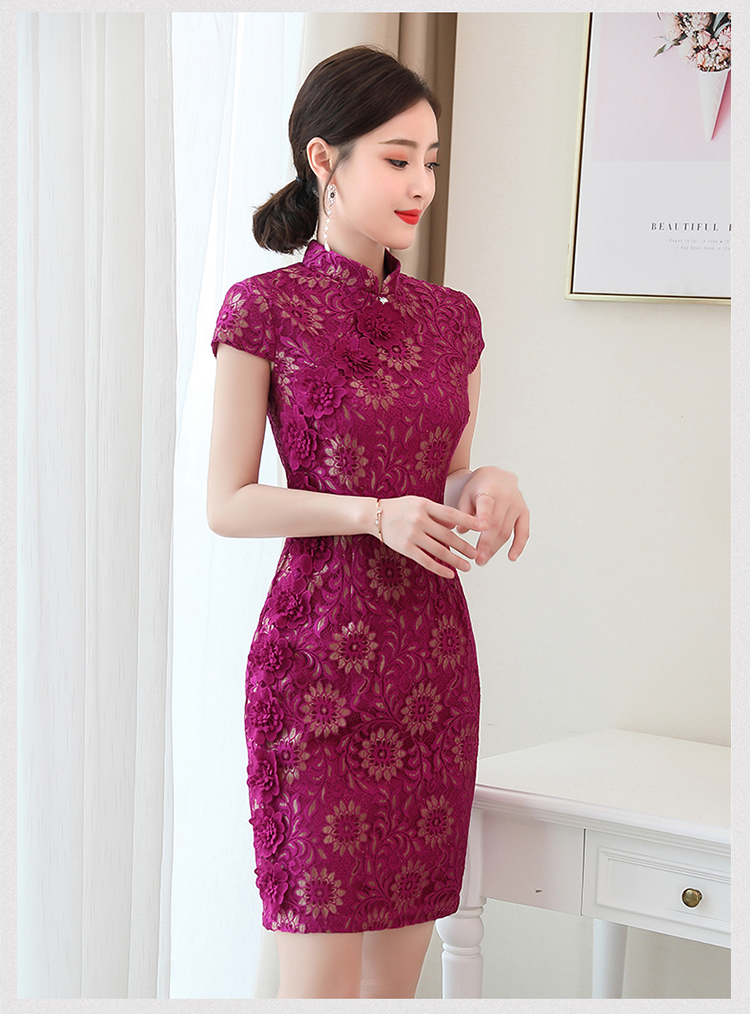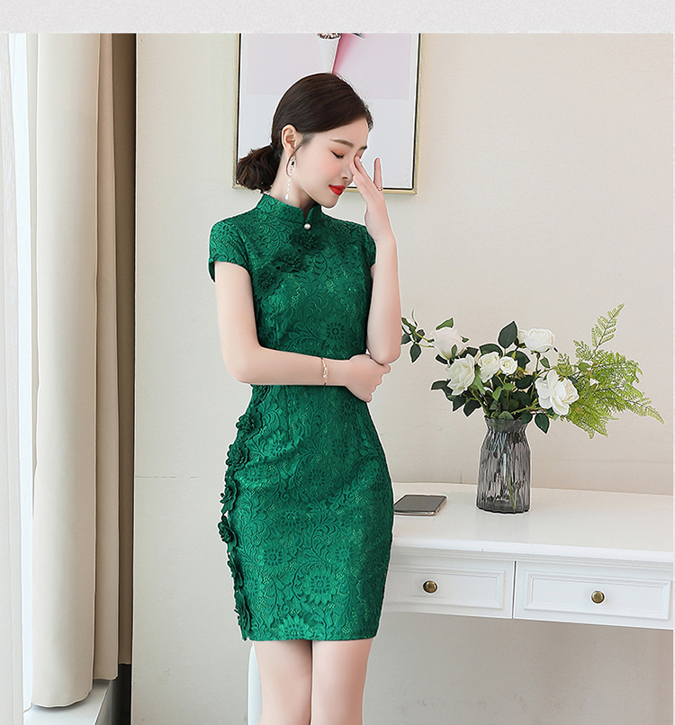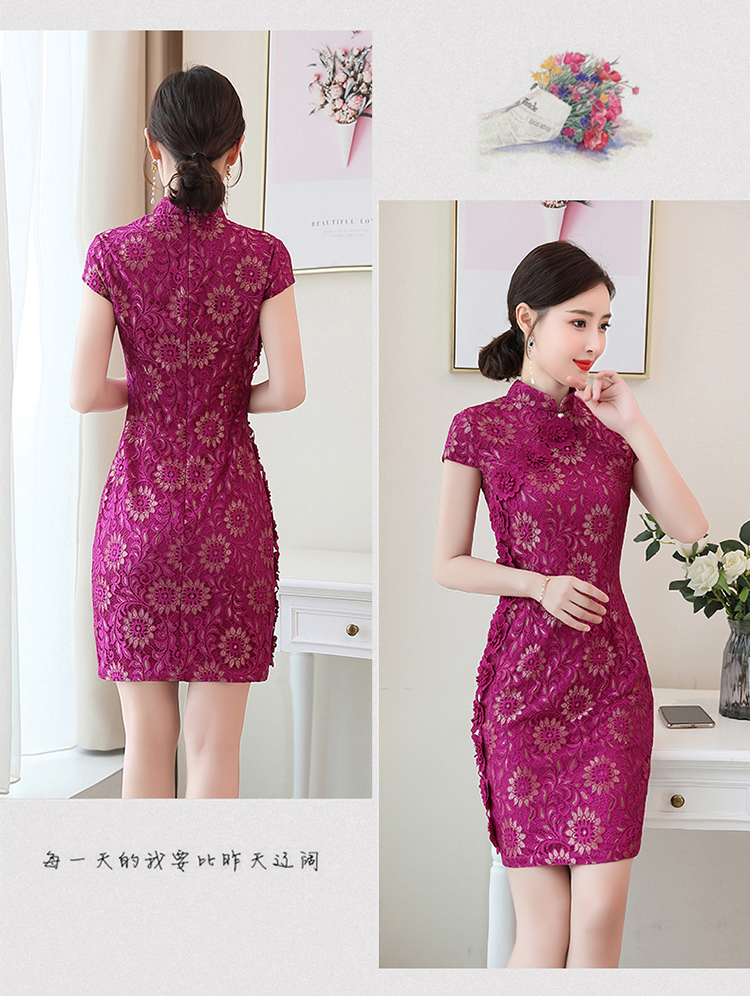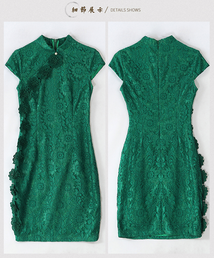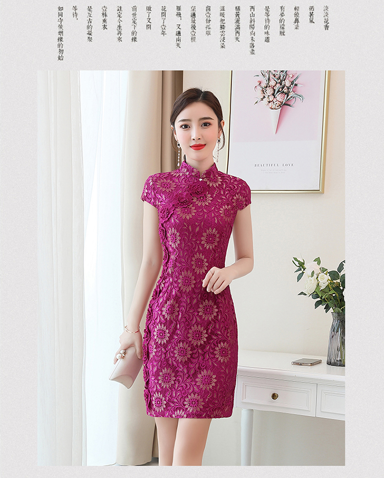 WZNH-YBX5887夏季时尚蕾丝通勤中腰常规单件短袖连衣裙
