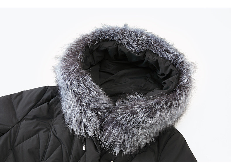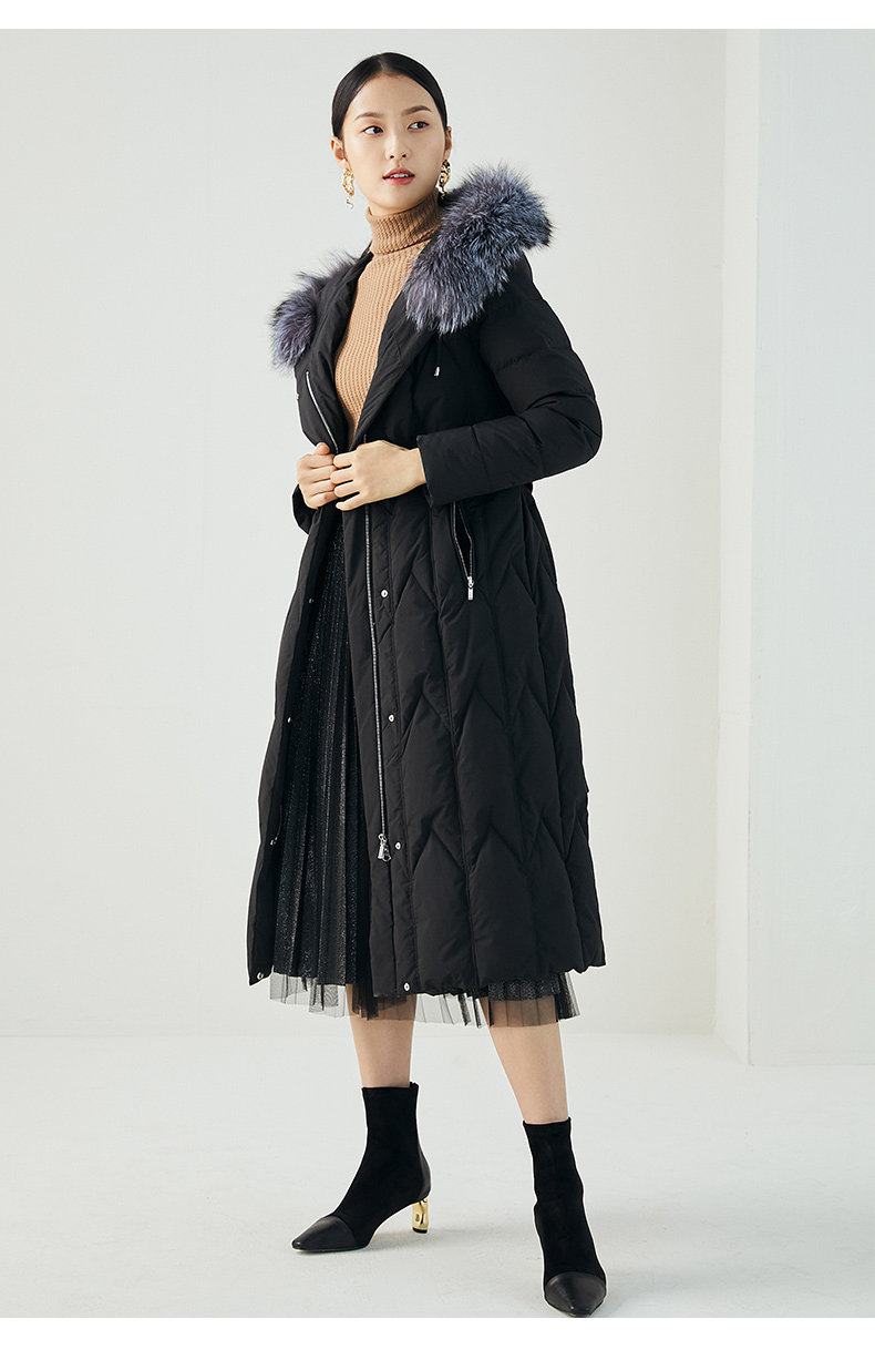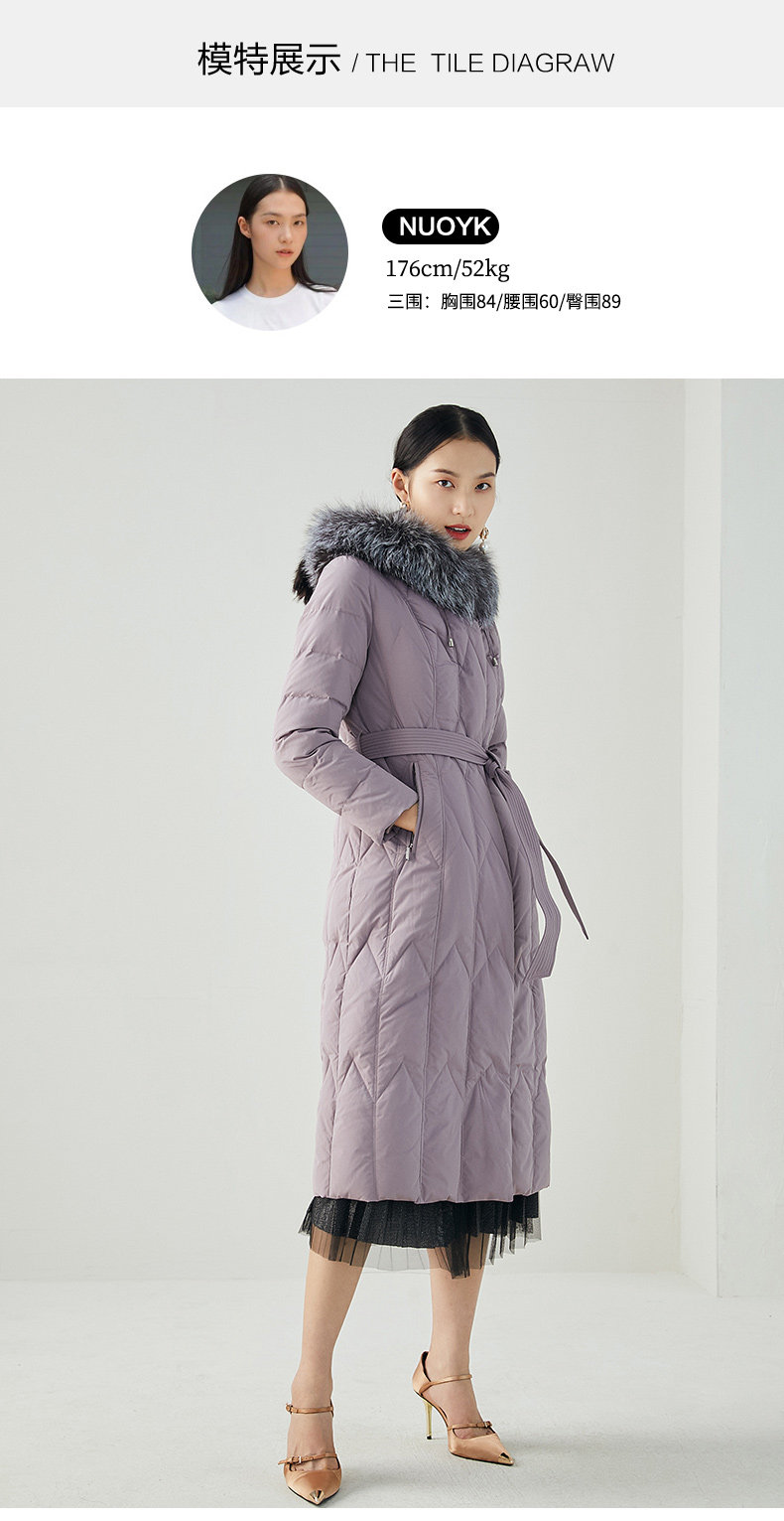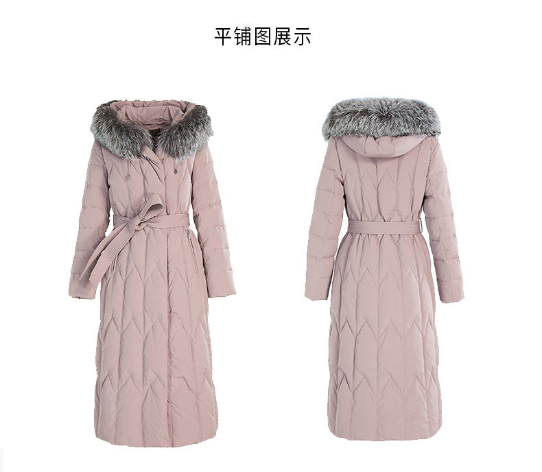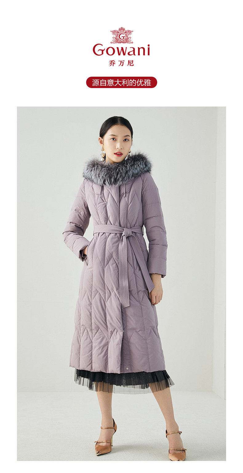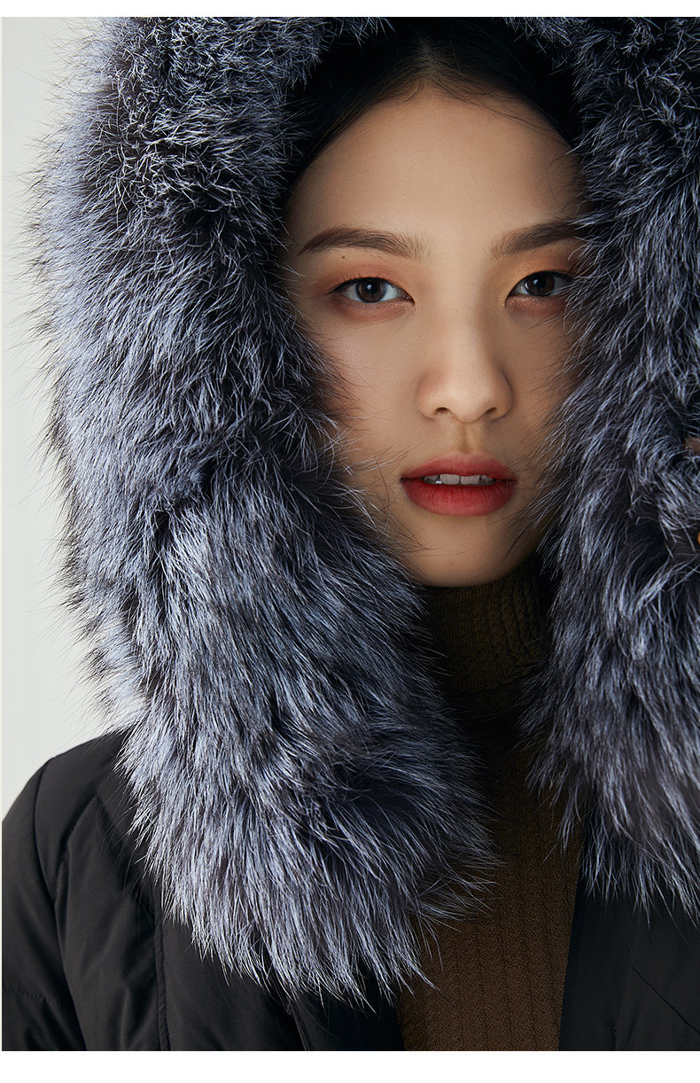 【两色可选】乔万尼秋冬新款防寒保暖可拆卸狐毛毛领加长版带帽修身羽绒服ES4T392
