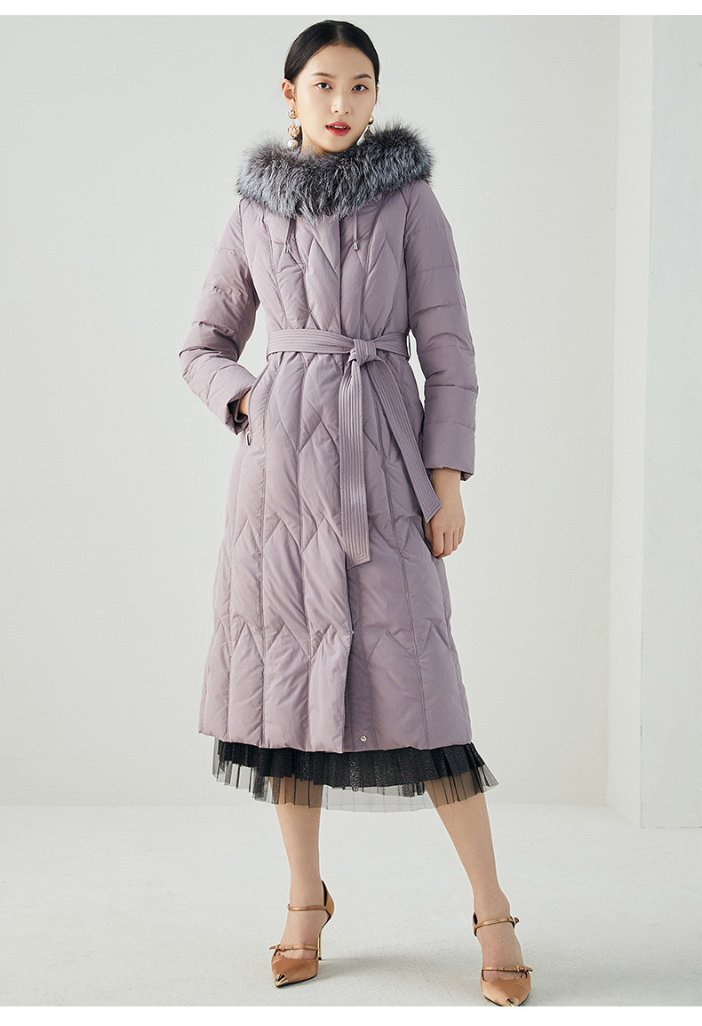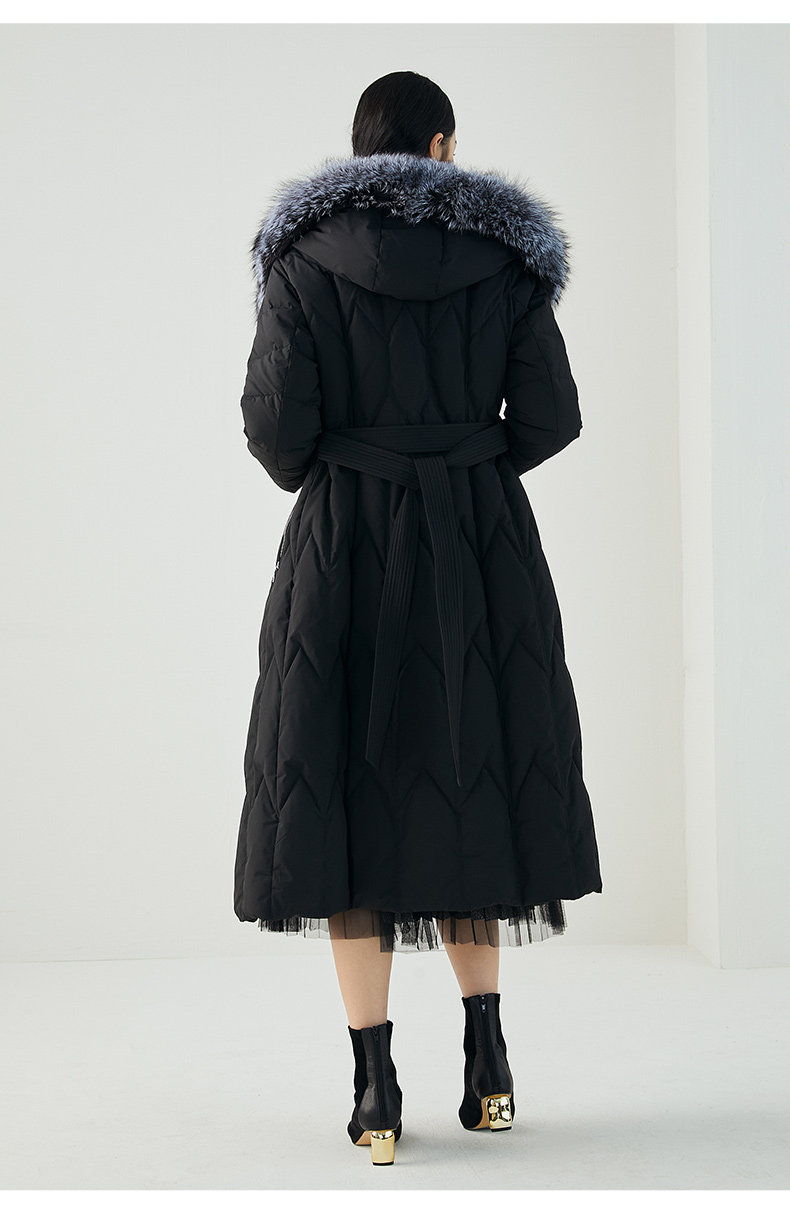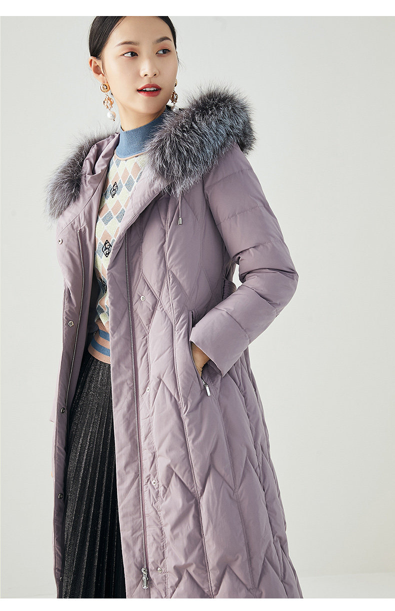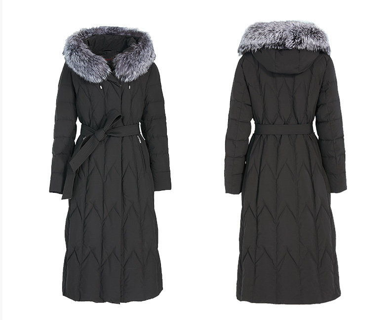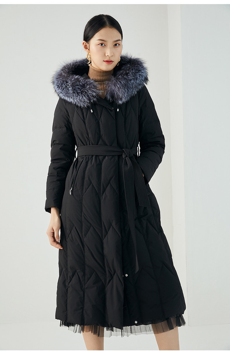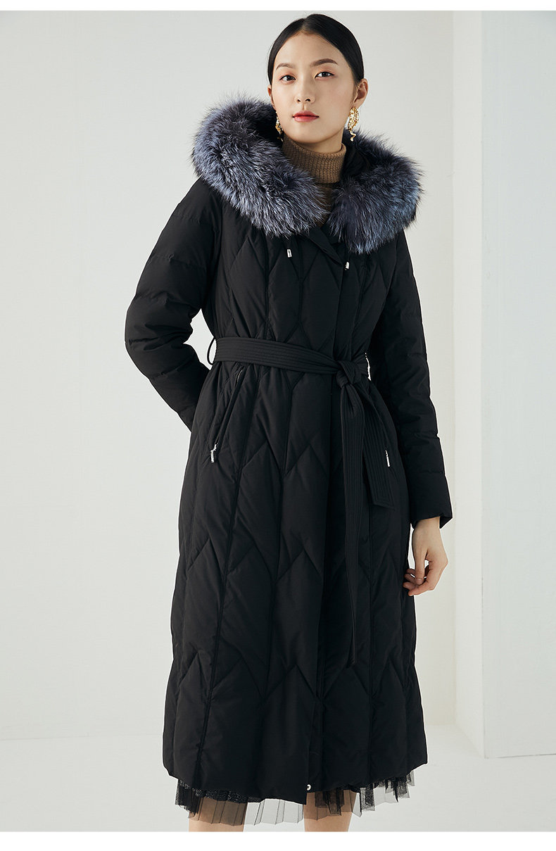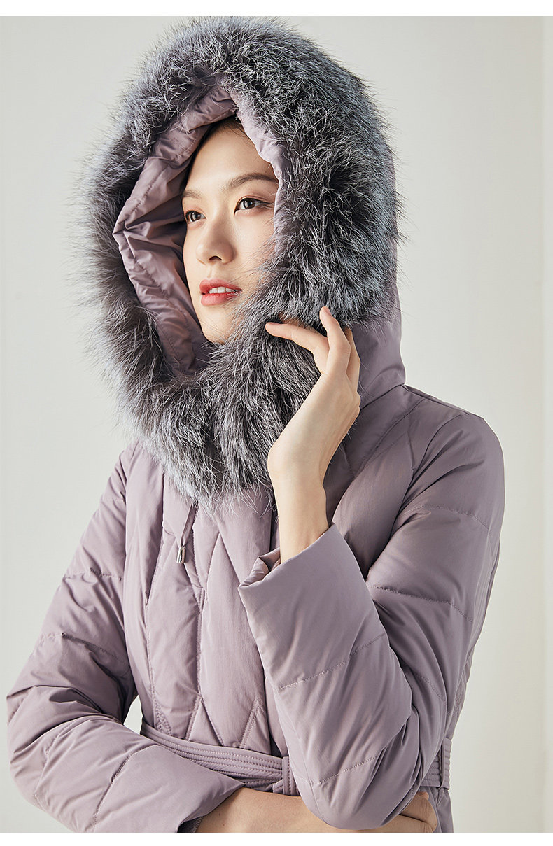 【两色可选】乔万尼秋冬新款防寒保暖可拆卸狐毛毛领加长版带帽修身羽绒服ES4T392