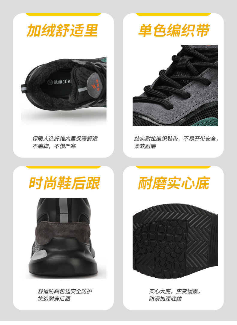 蓝鸥盾绝缘鞋冬季加绒劳保鞋男防砸防刺安全鞋工作鞋实心底耐磨抗造