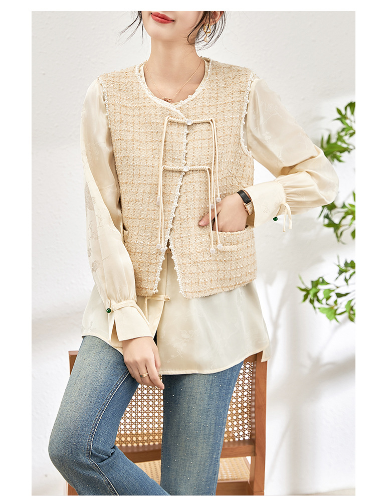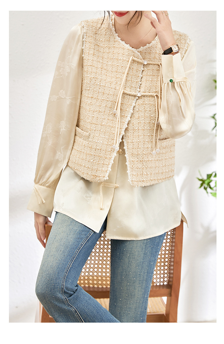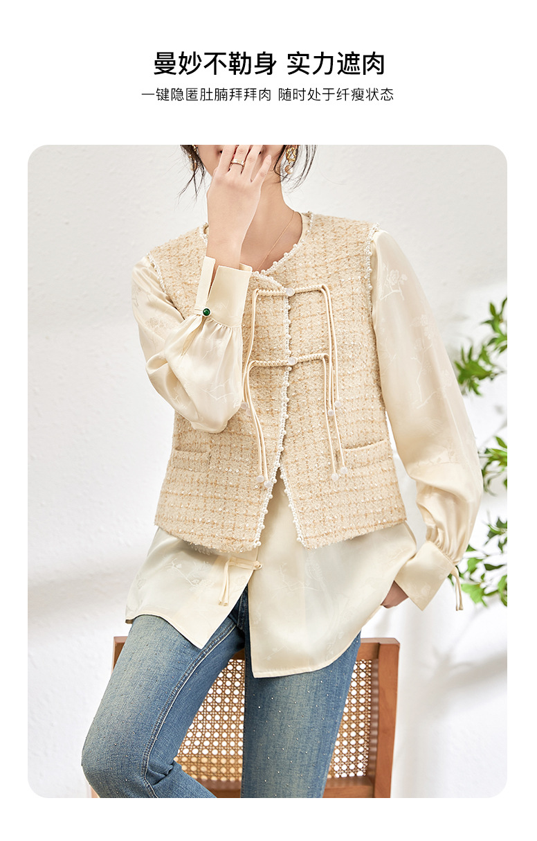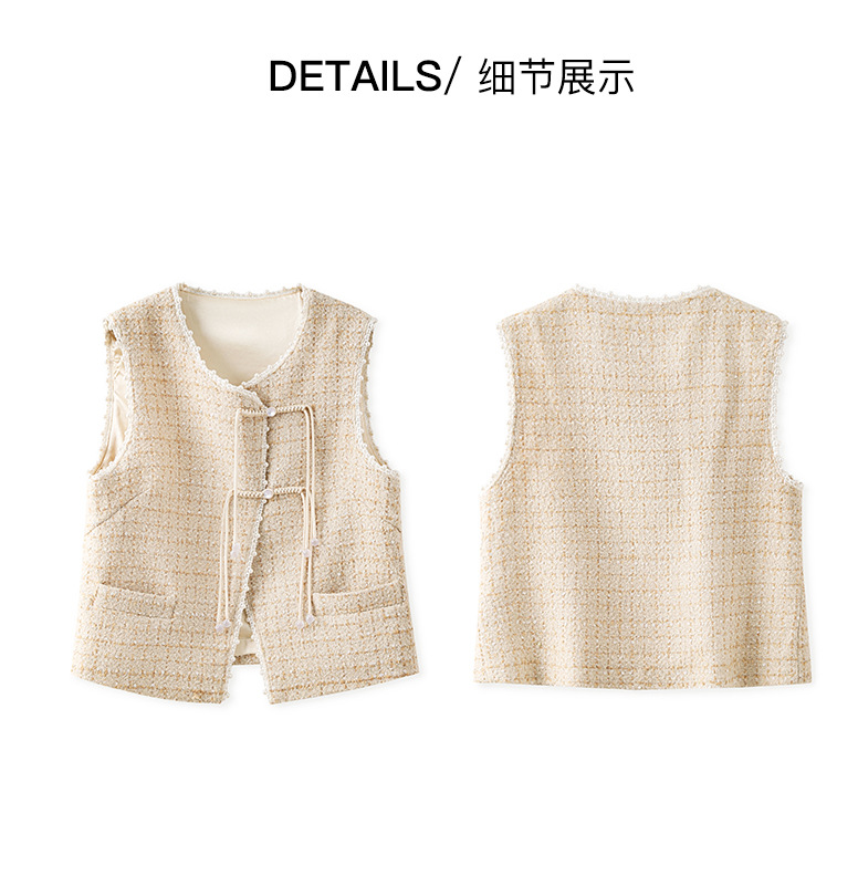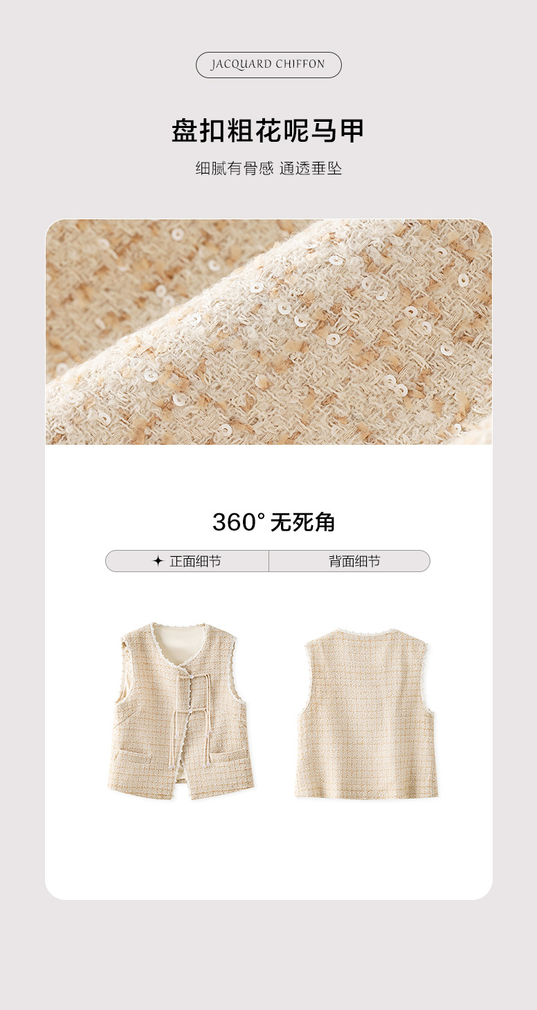 气质百搭,重工钉珠盘扣复古开衫马甲外套WLZD-2401103