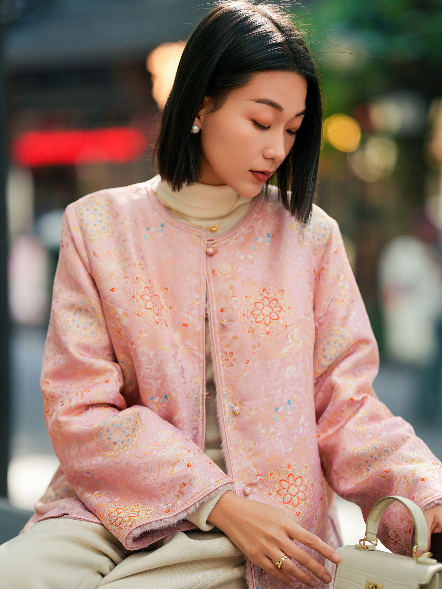 OPH XZ686-A【凤凰与宝相花】新中式真丝桑蚕丝加厚外套双面穿