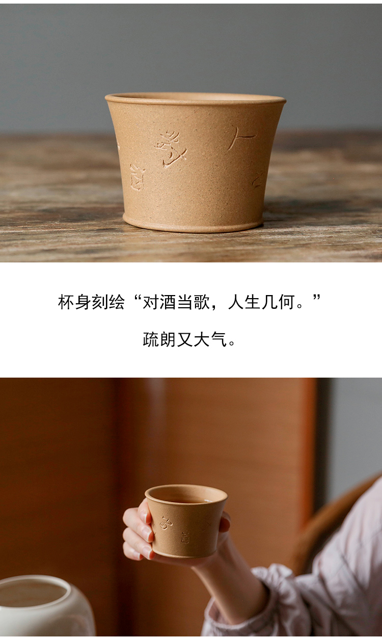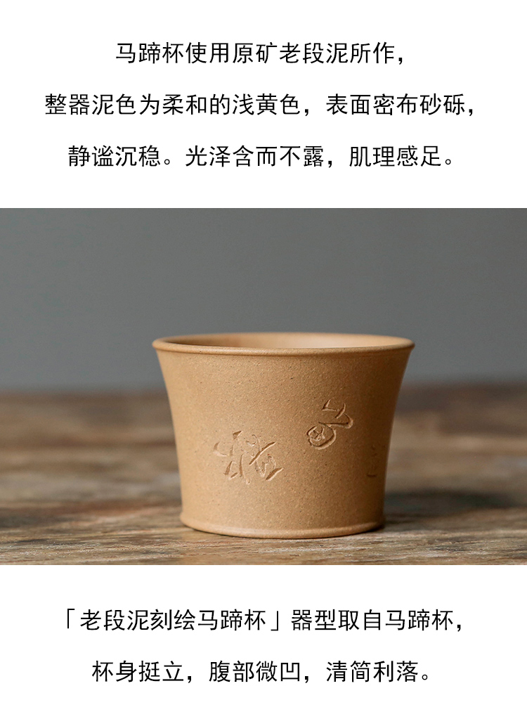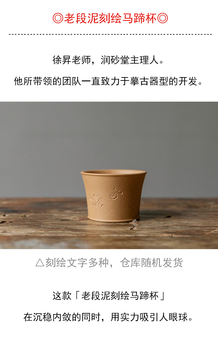 茶香记 90ml润砂堂老段泥刻绘马蹄杯紫砂茶杯主人杯清雅文人防烫