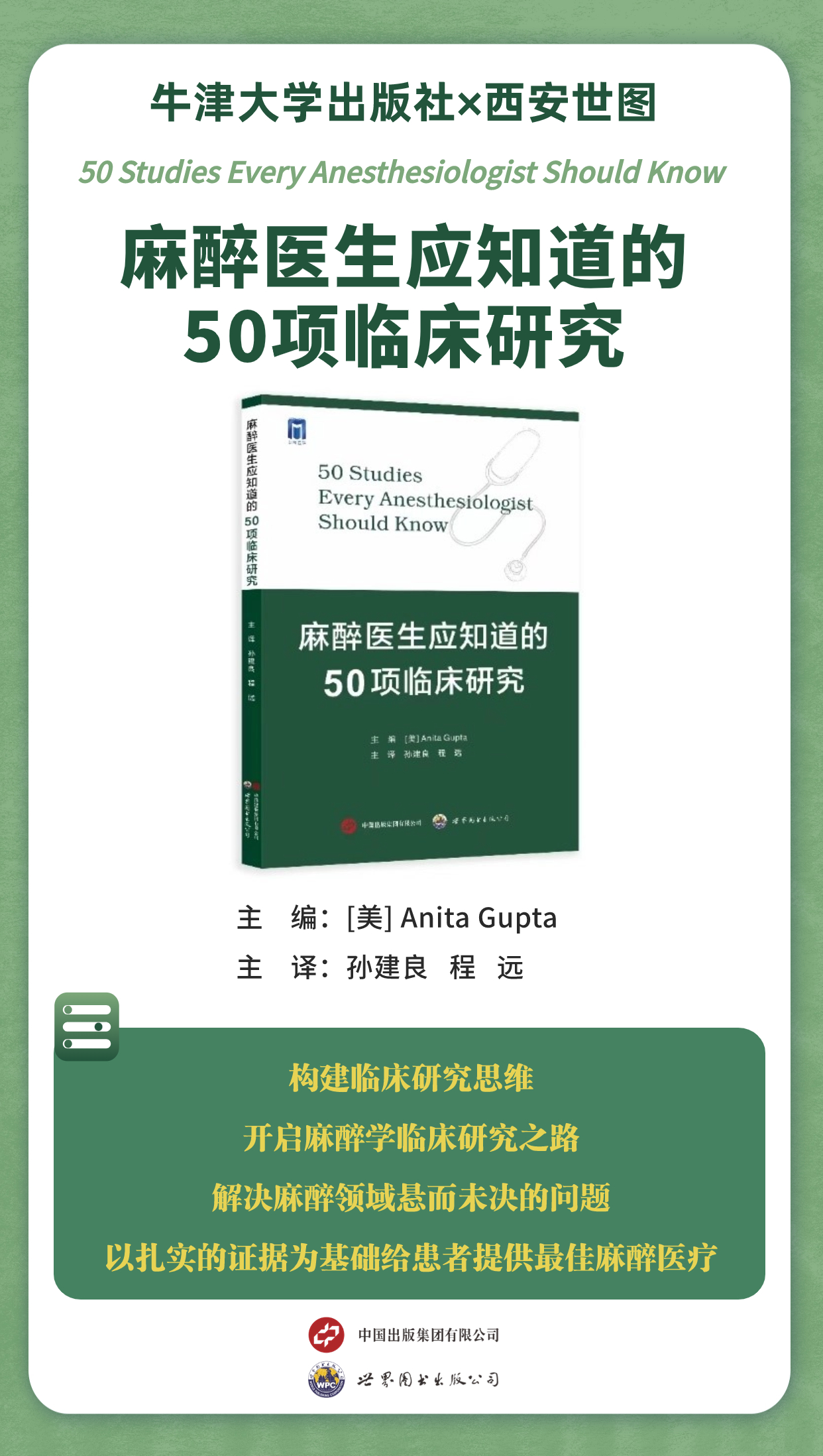 2023年新书:麻醉医生应知道的50项临床研究 孙建良、程远译(世界图书出版西安有限公司)