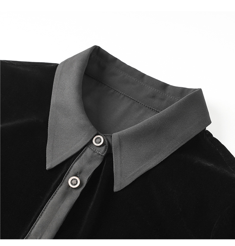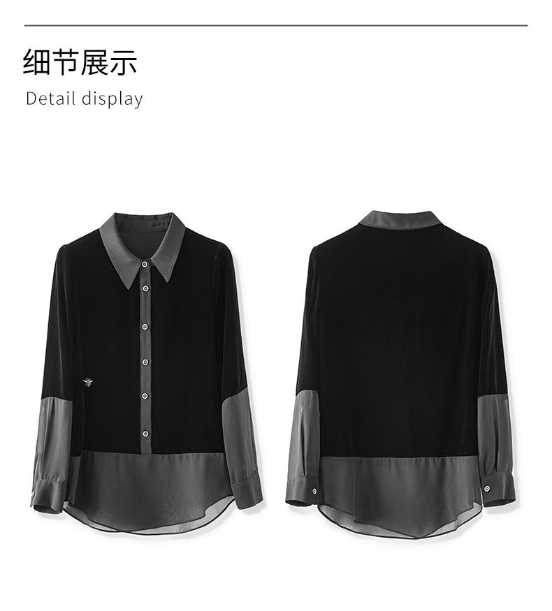 【高货wl】全新升级【铂金会员321/天猫429/差价108】(12658) 洛诗琳真丝丝绒拼接雪纺秋冬名媛气质轻奢简约百搭衬衣女