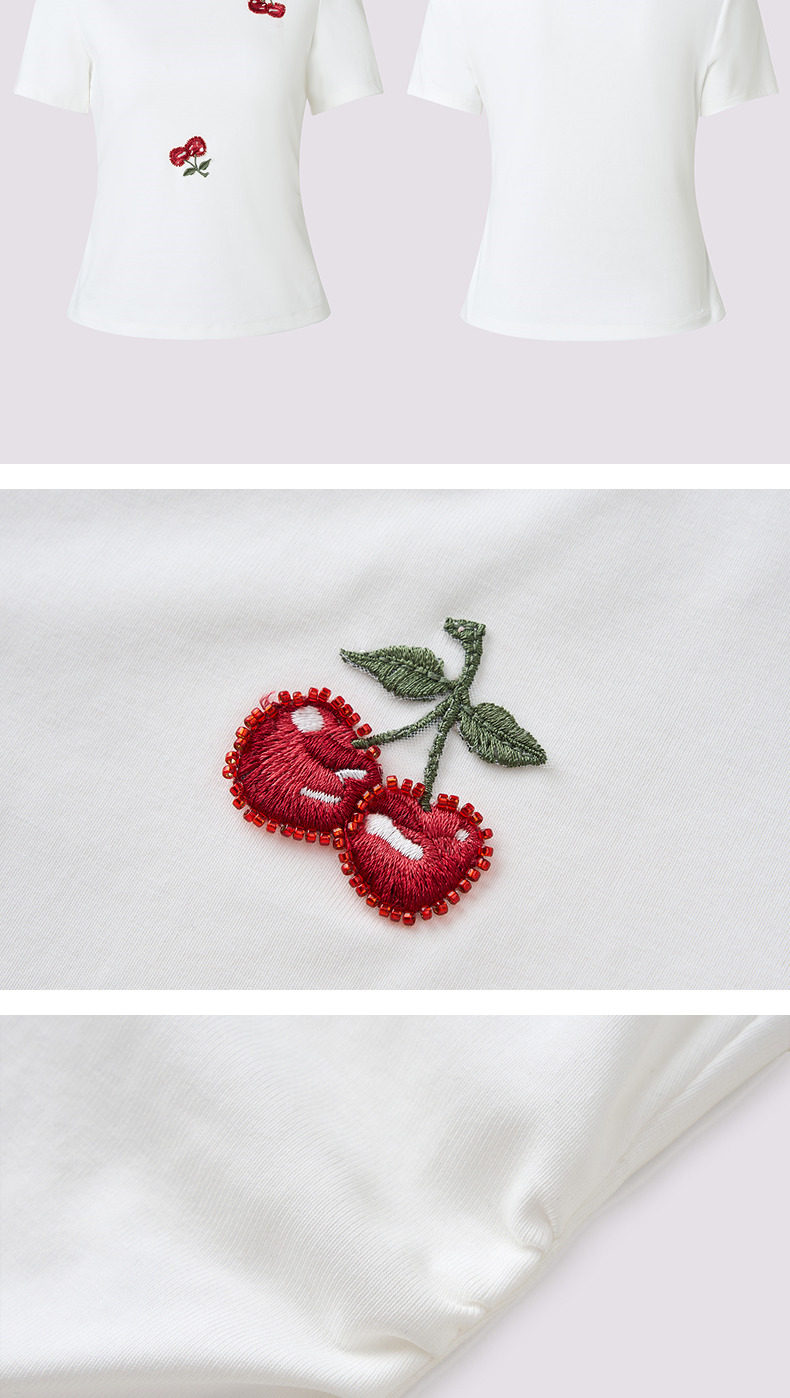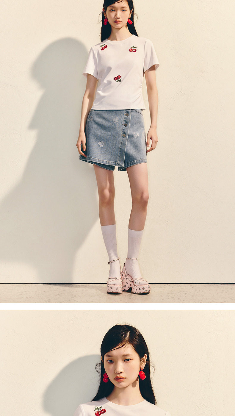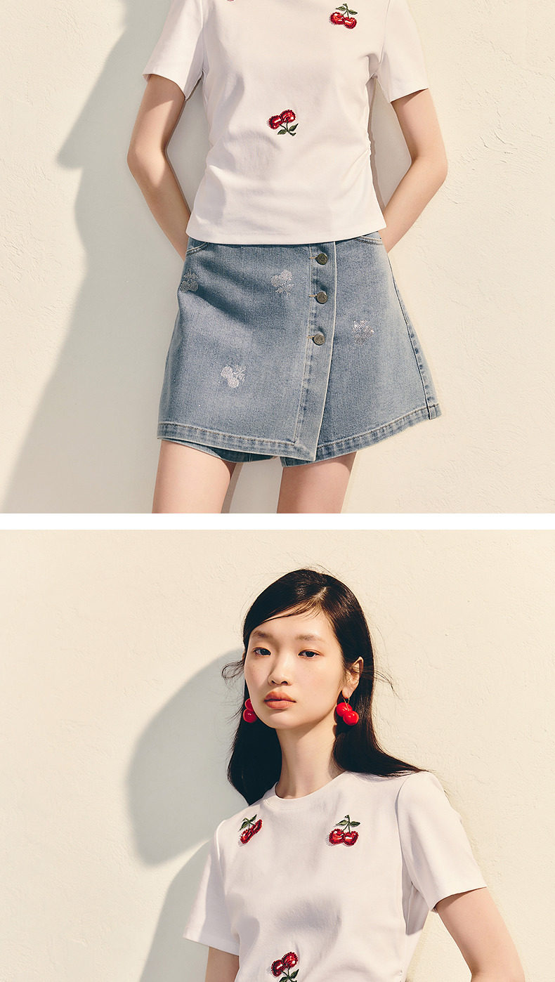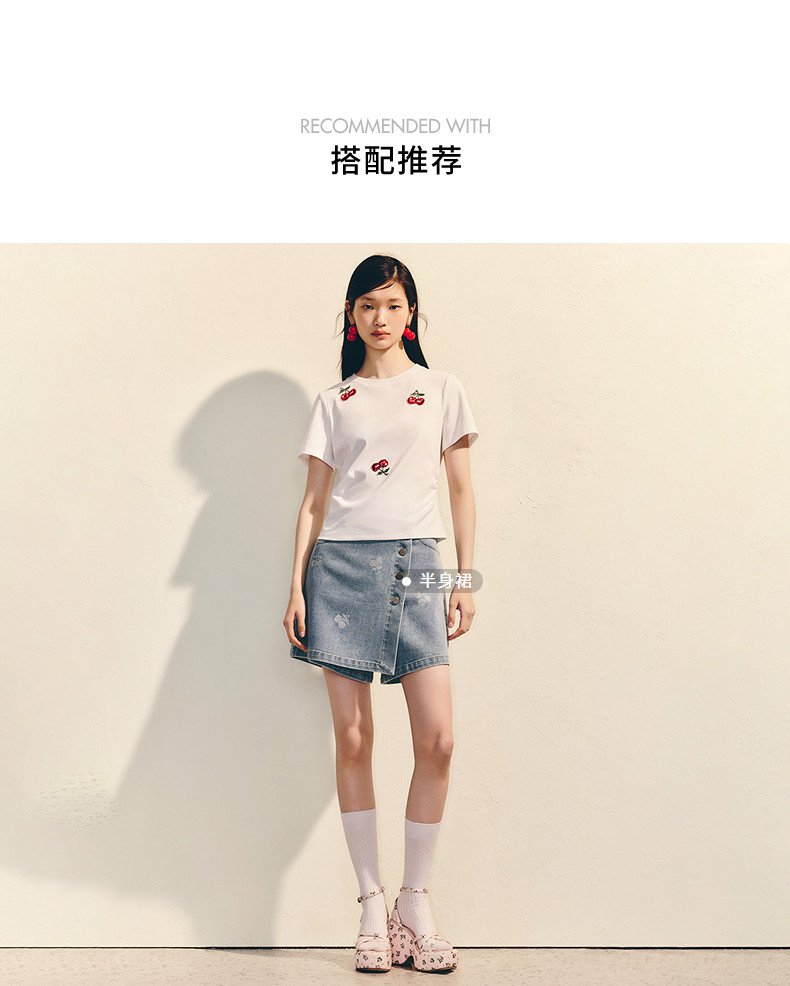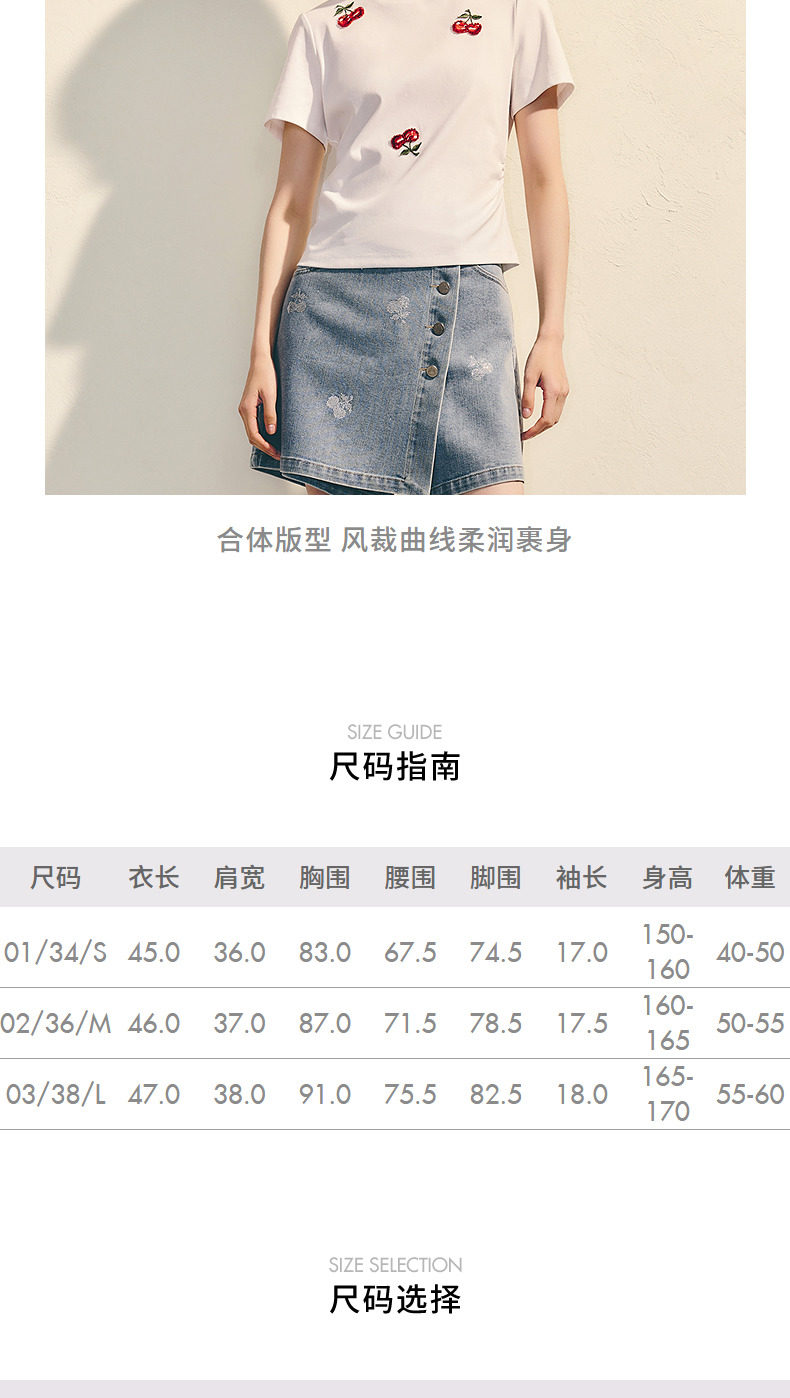 MAXRIENY甜美休闲感短袖圆领T恤2025夏季新款修身显瘦刺绣上衣女(货号:MS86TS014)
