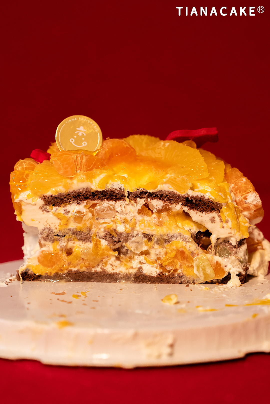 乌龙茶香缇奶油 | 手熬柑橘果酱 | 手熬橙子酱 | 法芙娜巧克力戚风胚 | 砂糖橘果肉 | 新鲜青提 | 脆啵啵