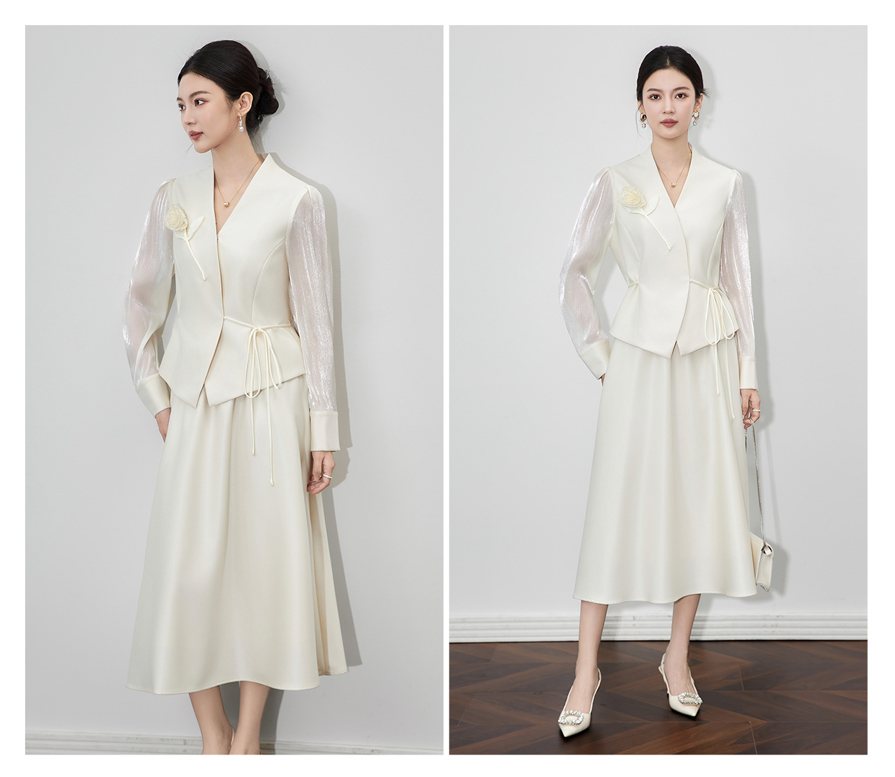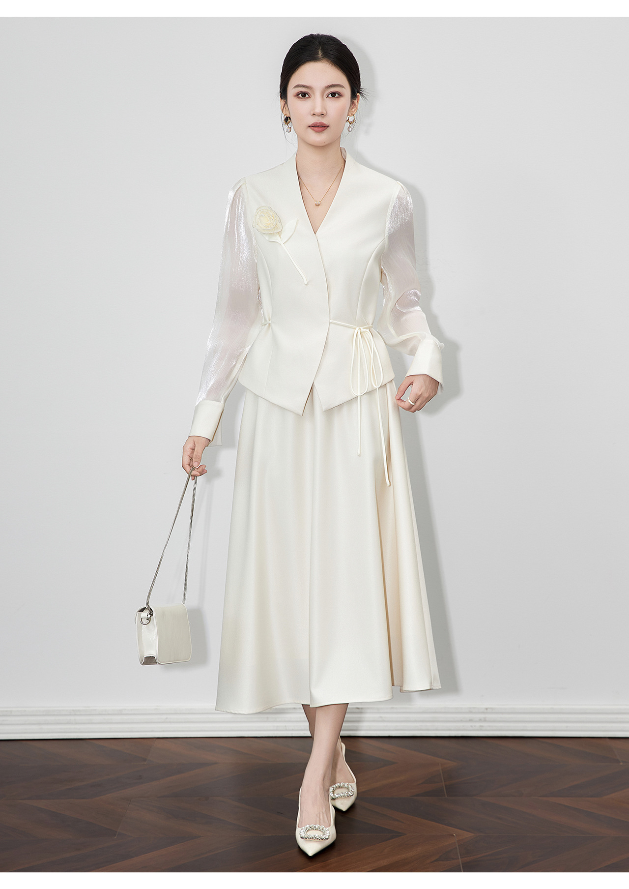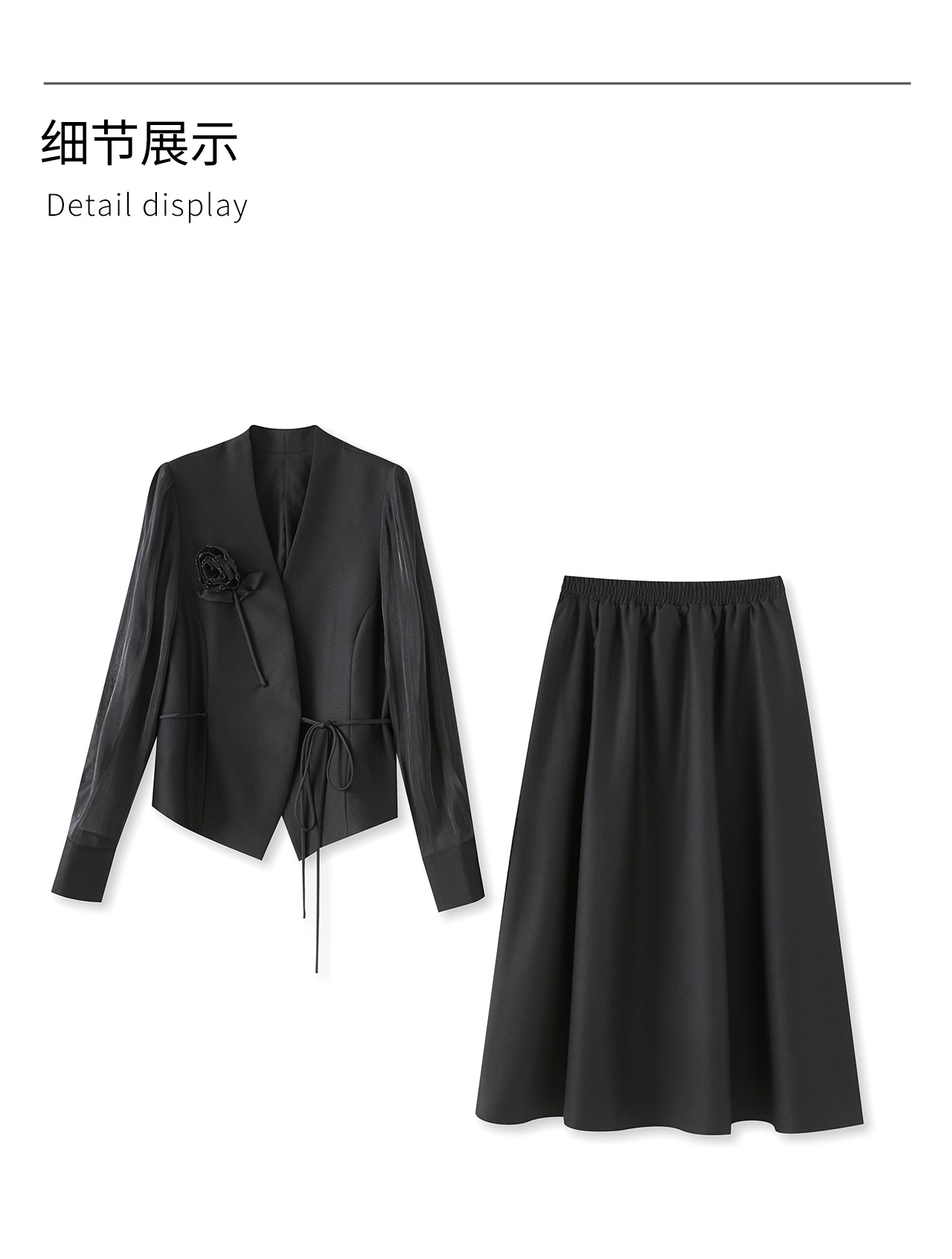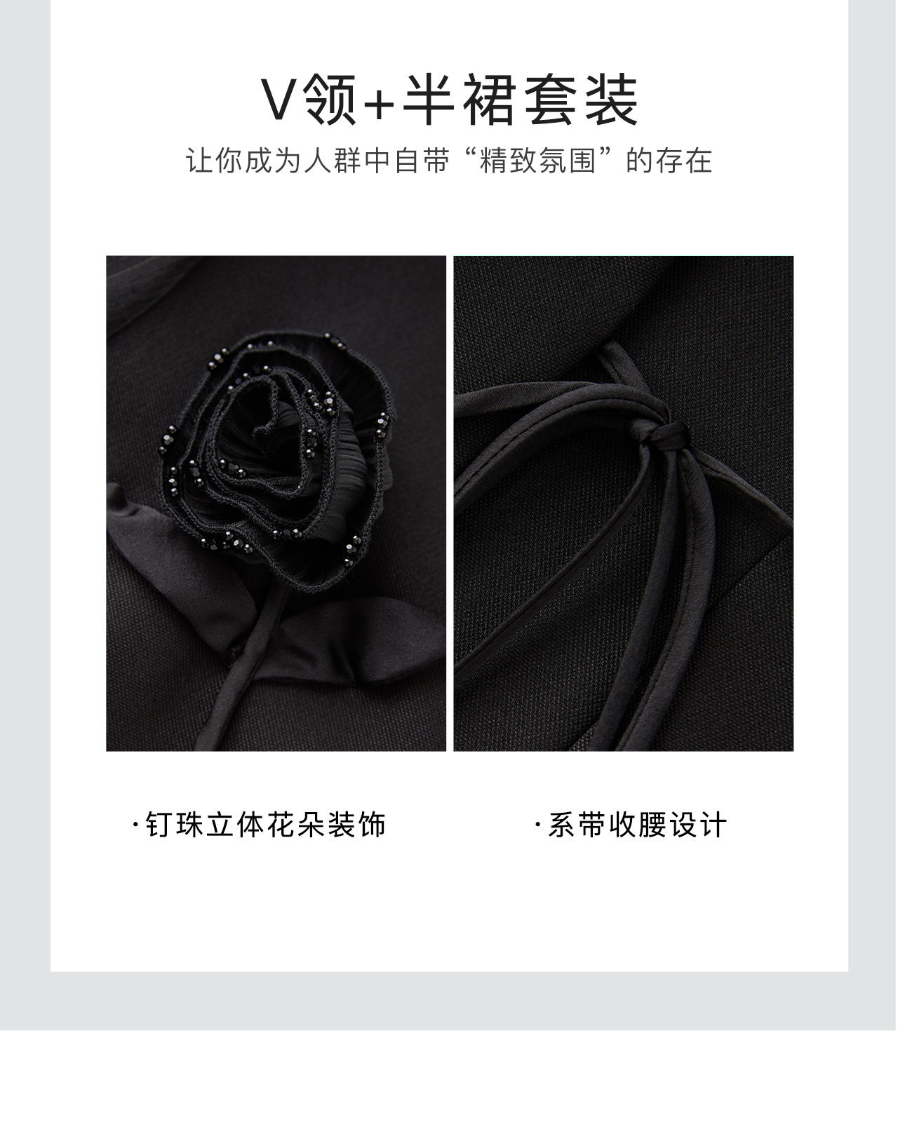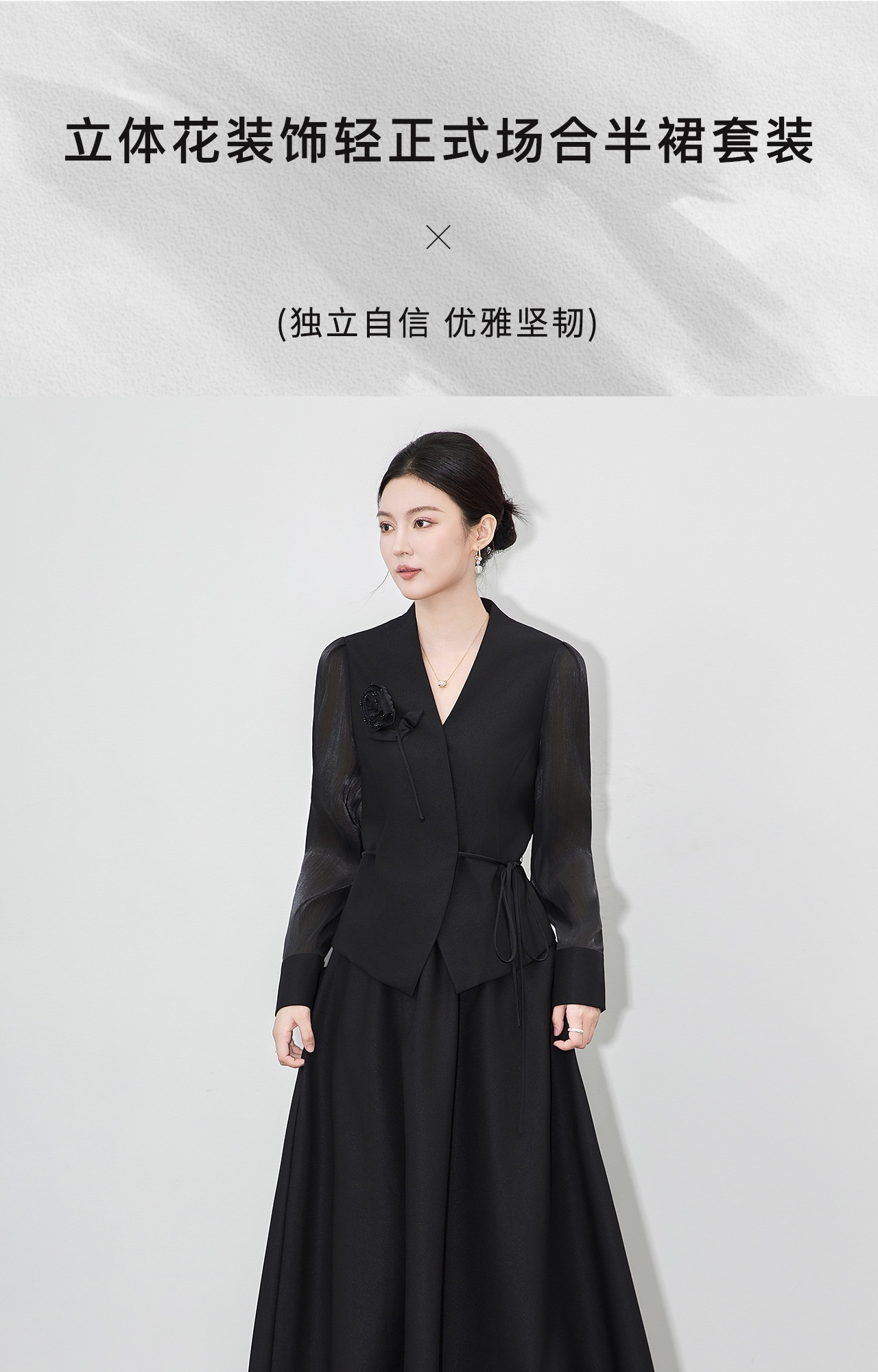 「高货wl」全新升级【铂金会员367/天猫499/差价132】(99119)洛诗琳2025秋季气质立体花朵收腰短外套大摆半身裙两件套