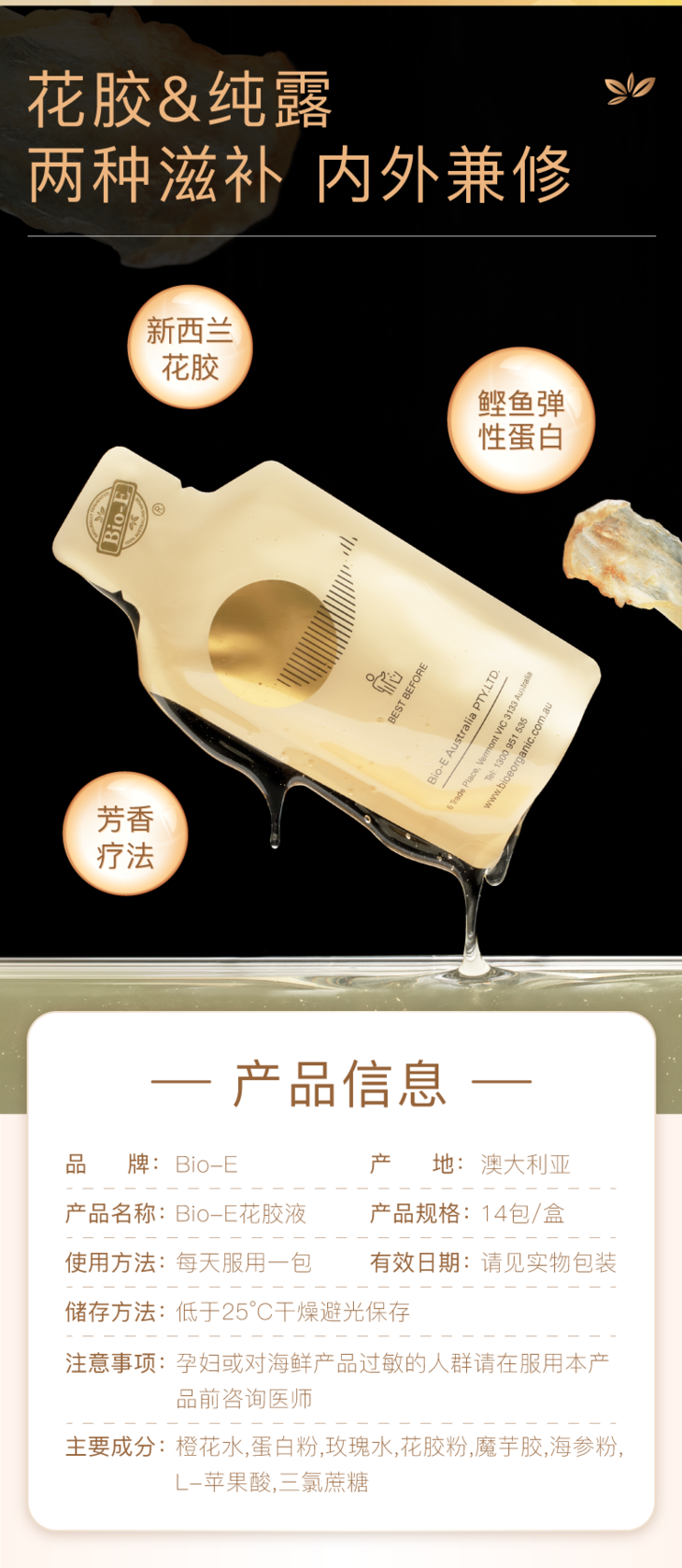 现货~bio-e澳洲即食花胶液胶原蛋白液态饮鱼胶口服液14包(湖州一般贸易仓发货)