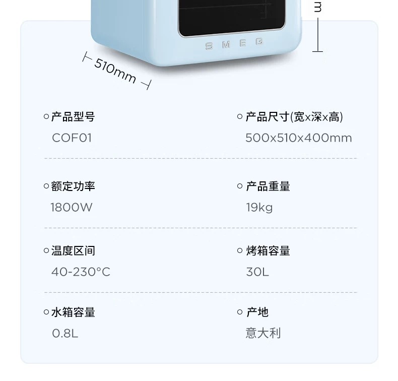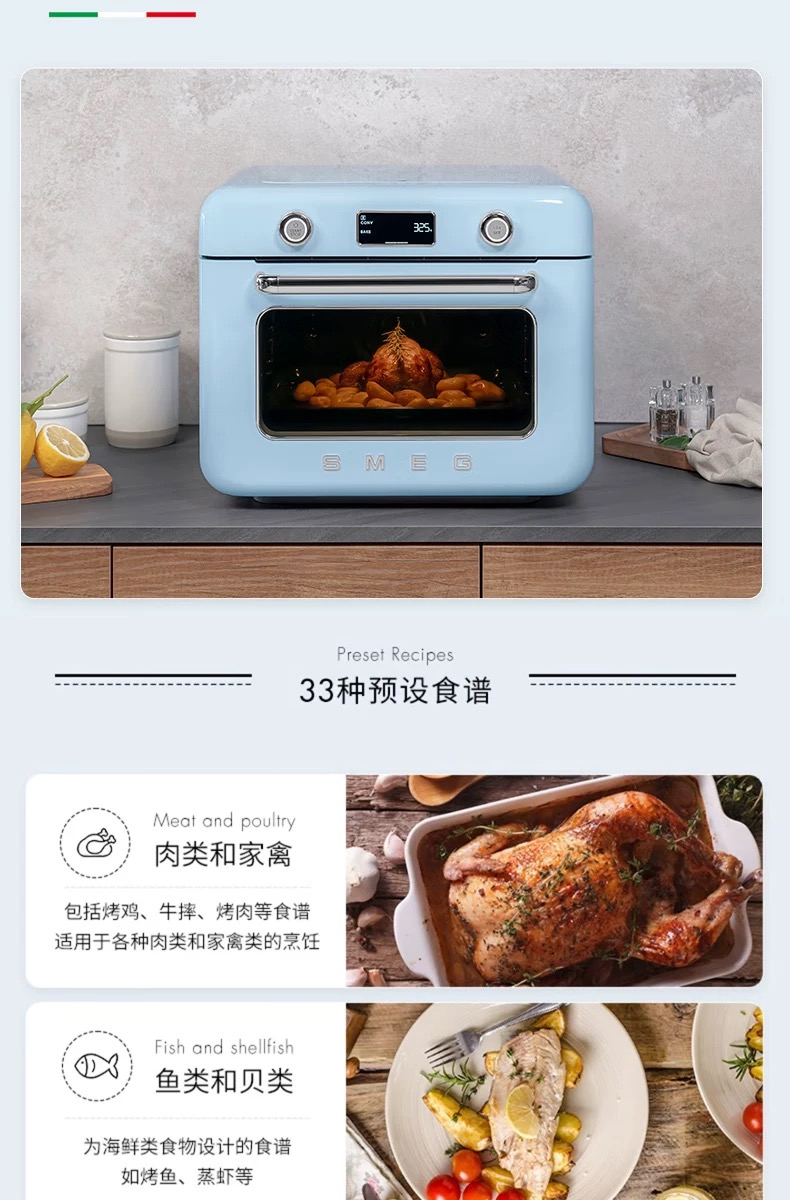 SMEG 斯麦格COF蒸烤箱家用台式蒸烤炸三合一大容量烘焙料理电烤箱