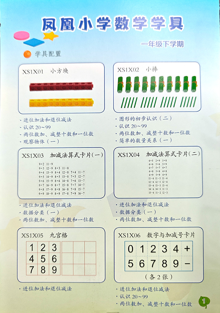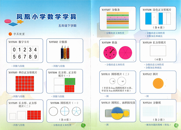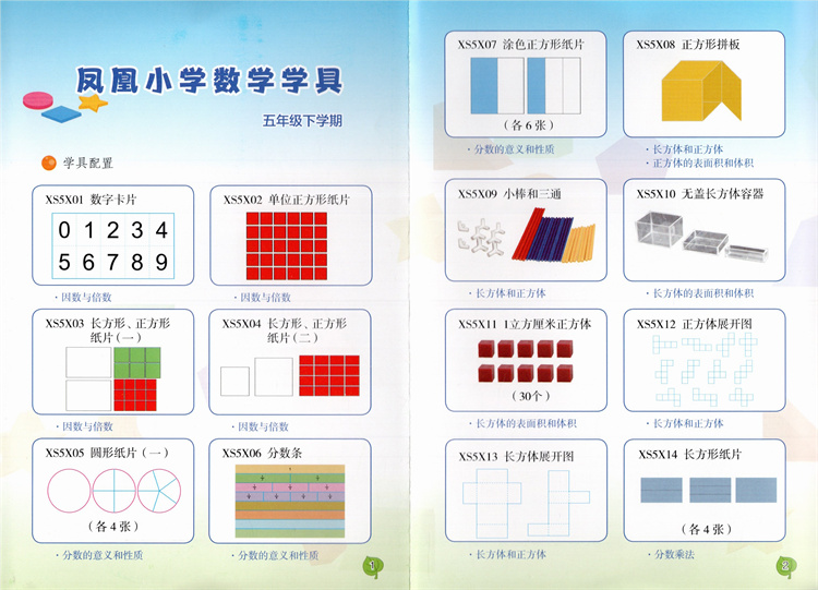 凤凰小学数学学具 一二三四五六年级下册 苏教版小学数学教材配套 123456下 学习用品学具盒套装 数学教具 江苏凤凰教育出版社