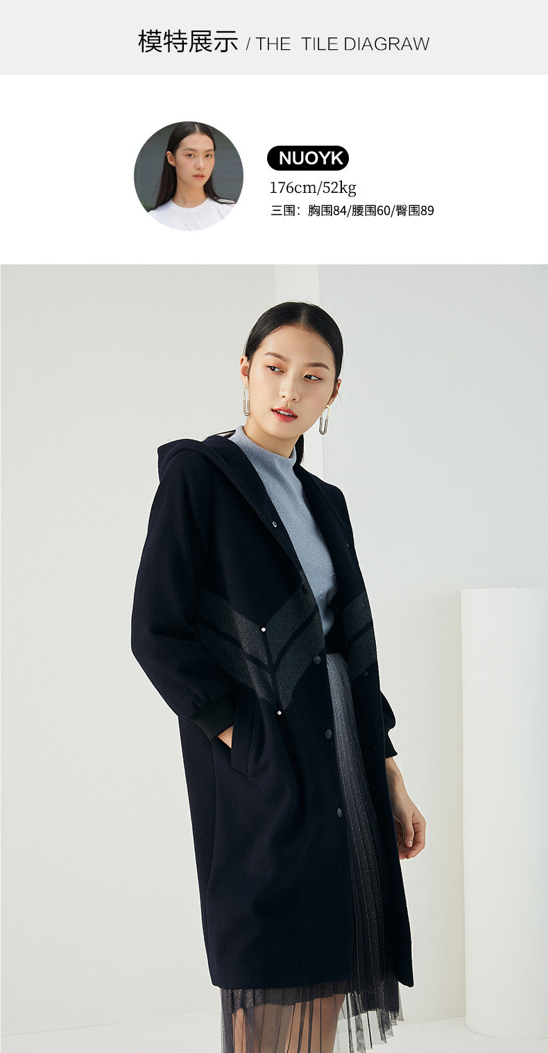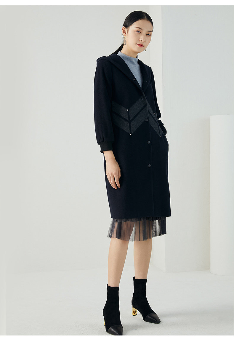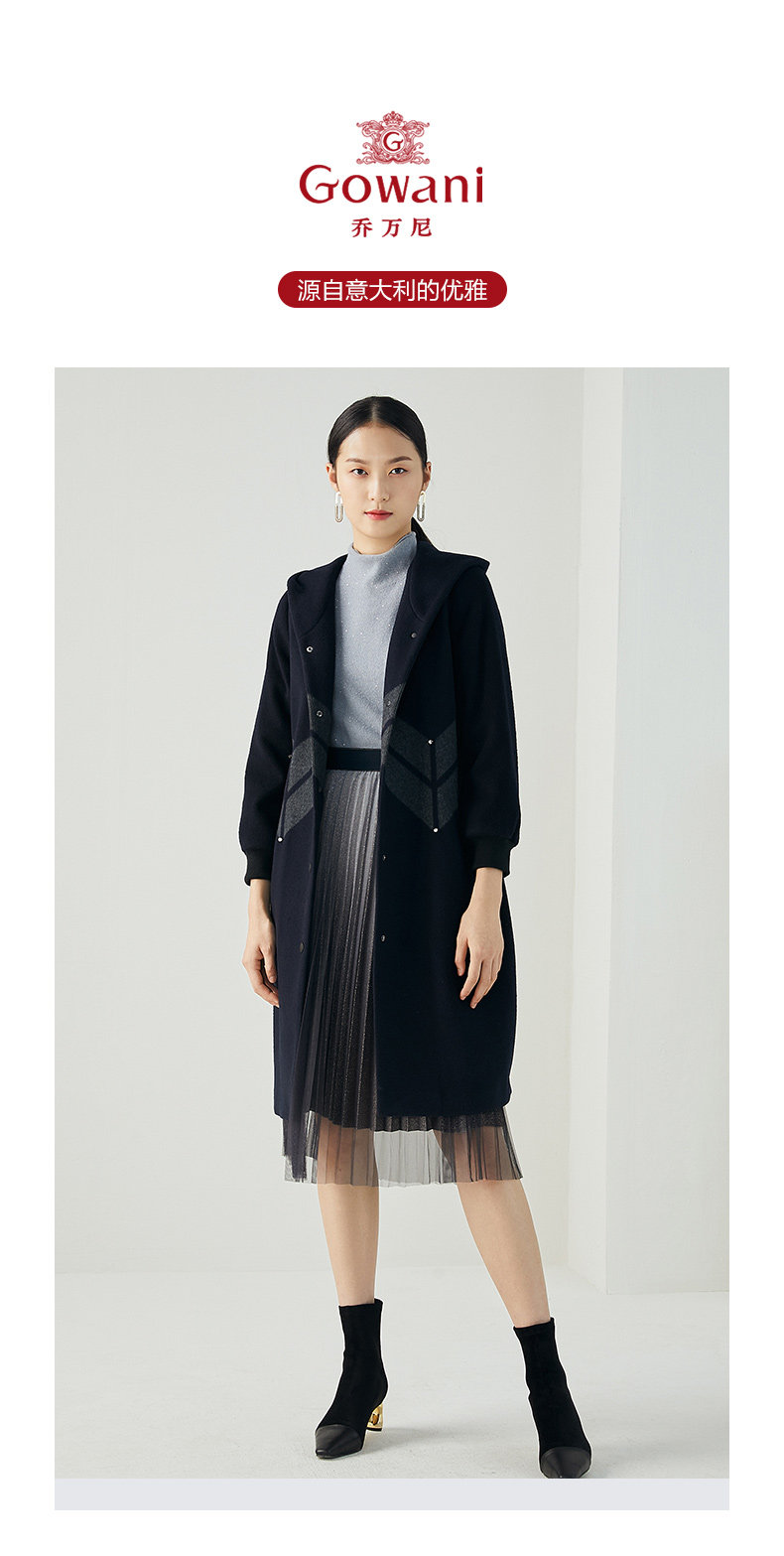 【绵羊毛】乔万尼冬季新品羊毛大衣简约休闲黑色连帽外套中长款ES4A328