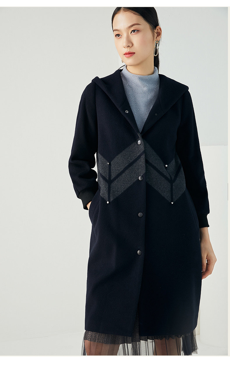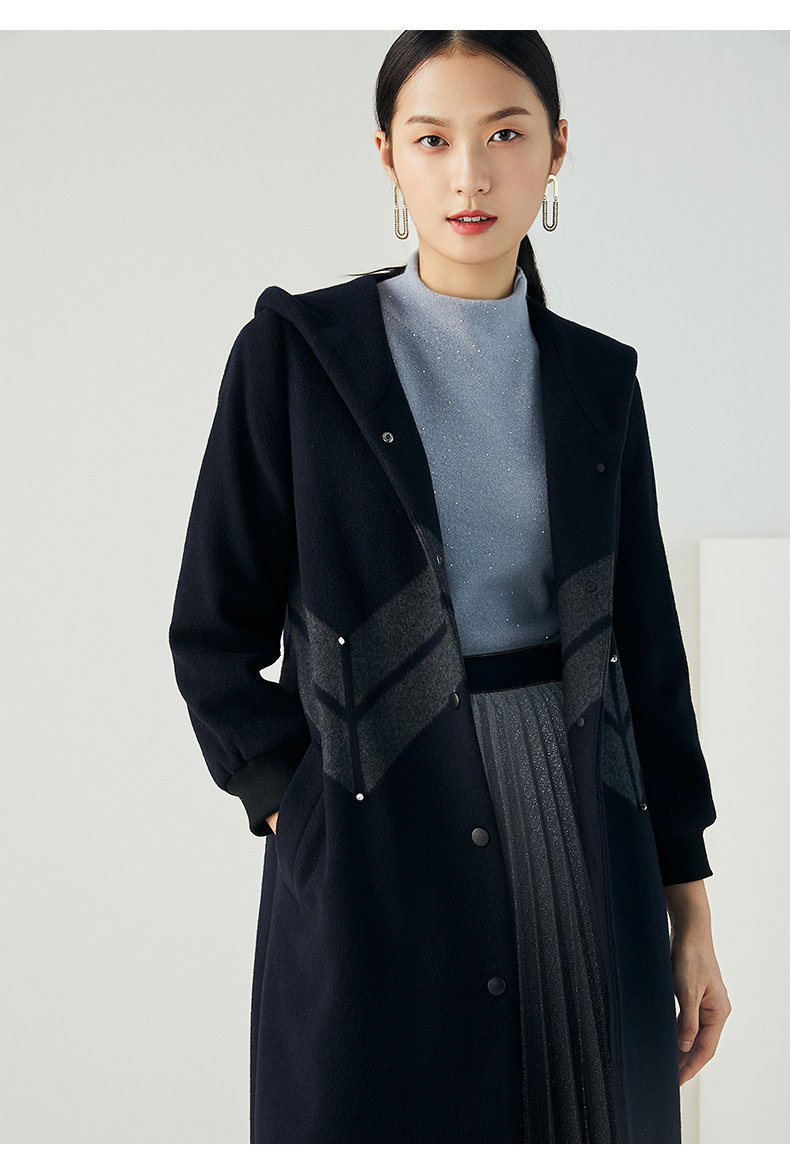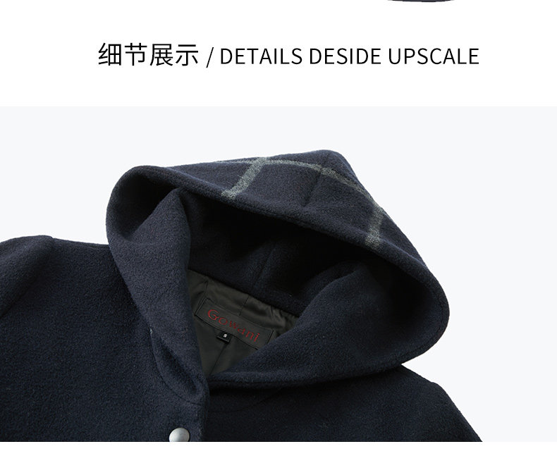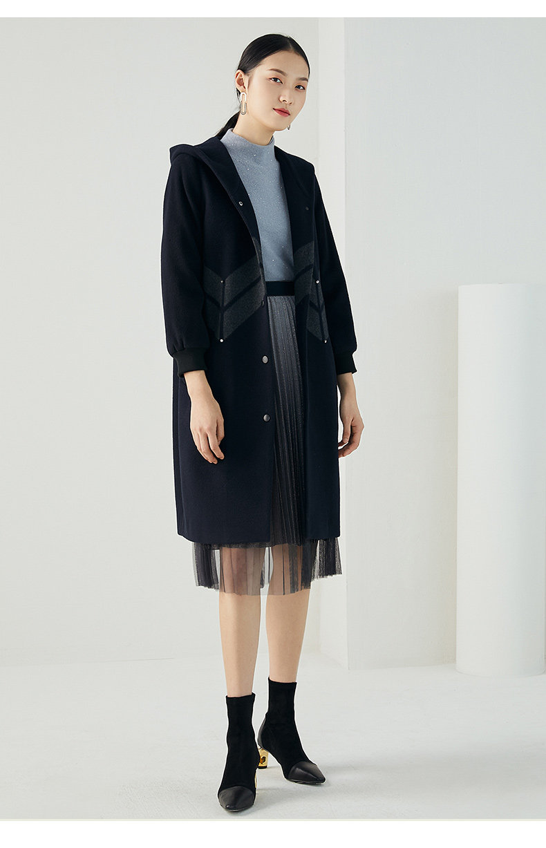 【绵羊毛】乔万尼冬季新品羊毛大衣简约休闲黑色连帽外套中长款ES4A328
