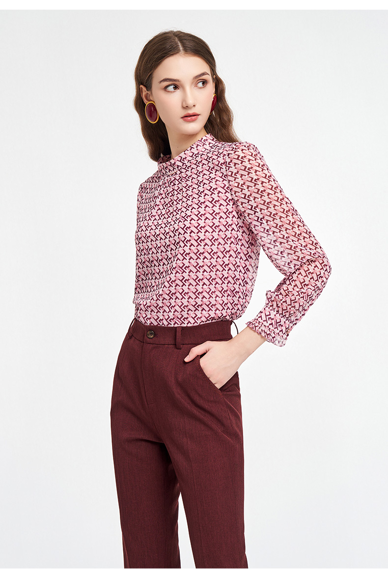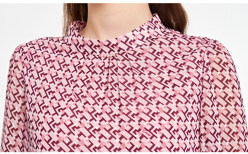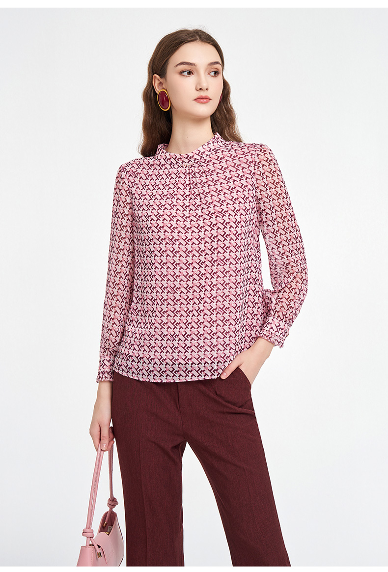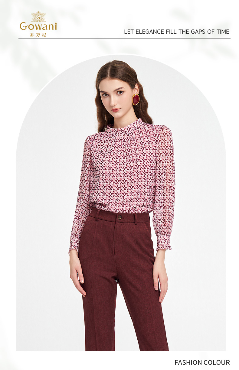 乔万尼2025秋季新品浪漫柔美立领印花衬衫ED3C208