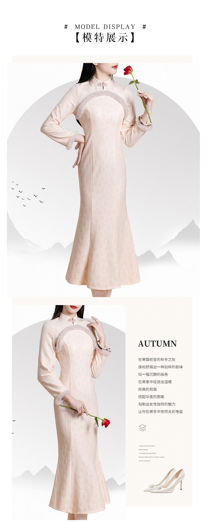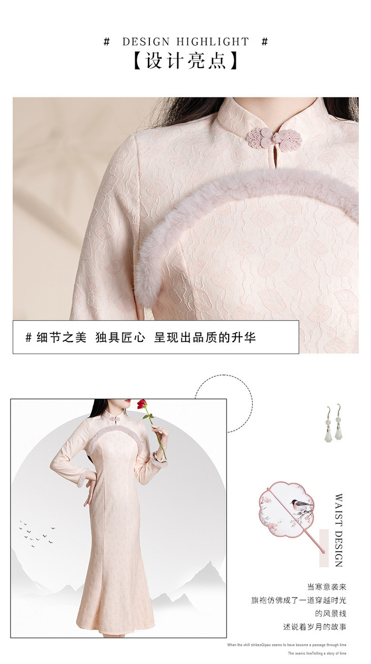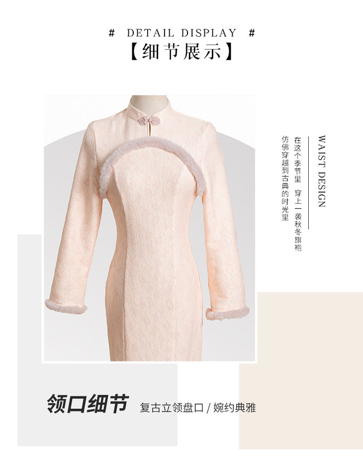 粉色旗袍年轻款修身气质少女,加厚鱼尾改良小个子旗袍KK1015