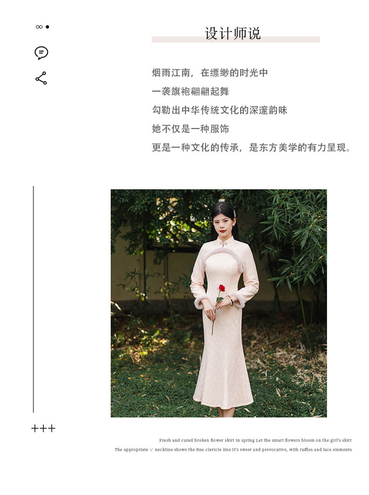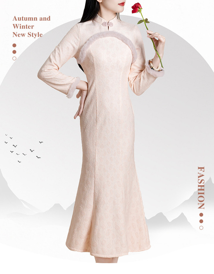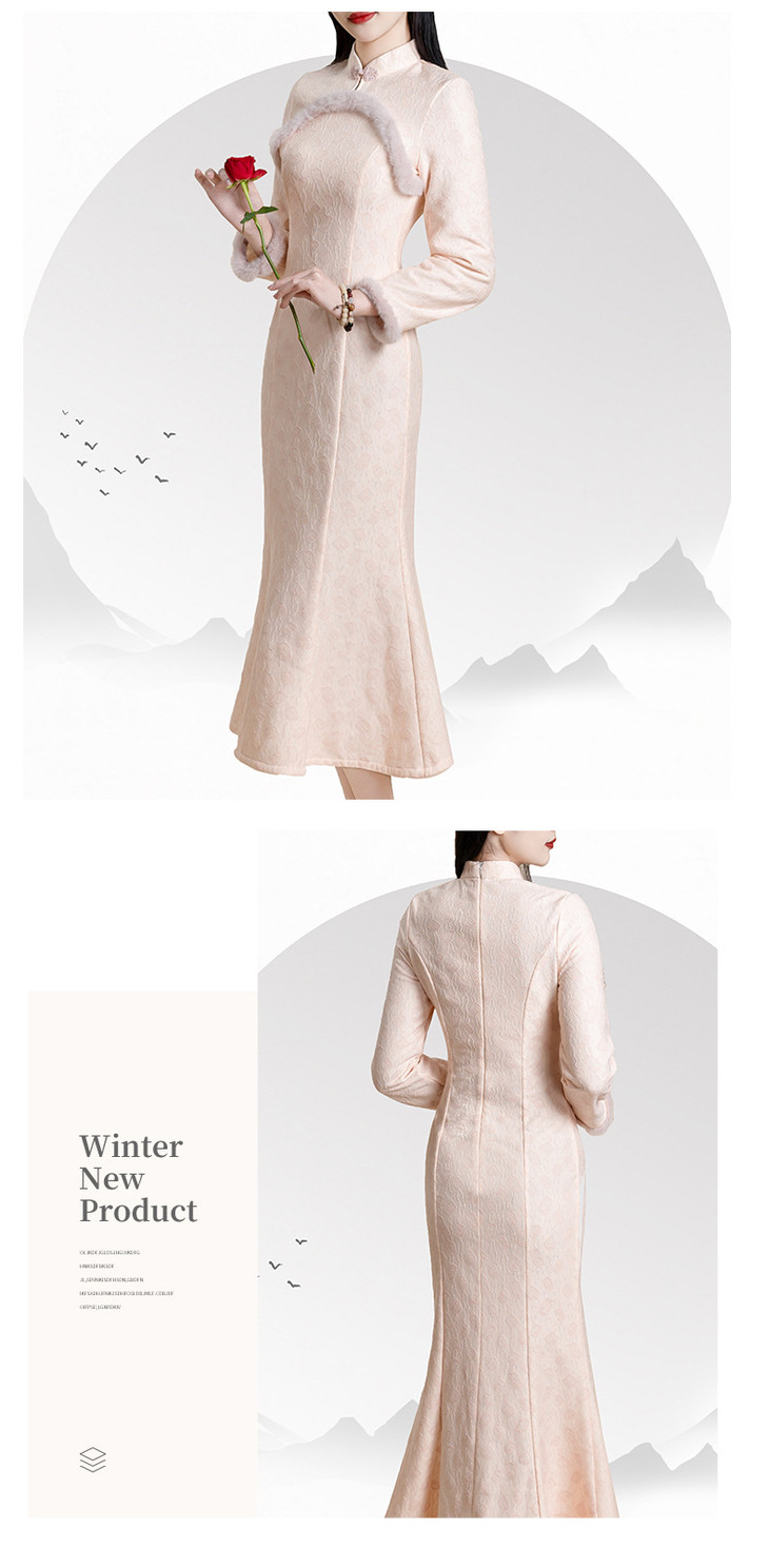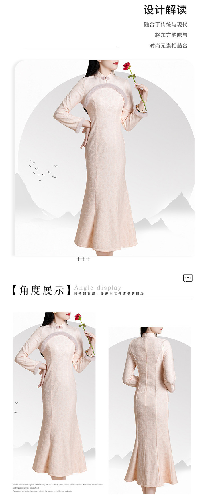 粉色旗袍年轻款修身气质少女,加厚鱼尾改良小个子旗袍KK1015