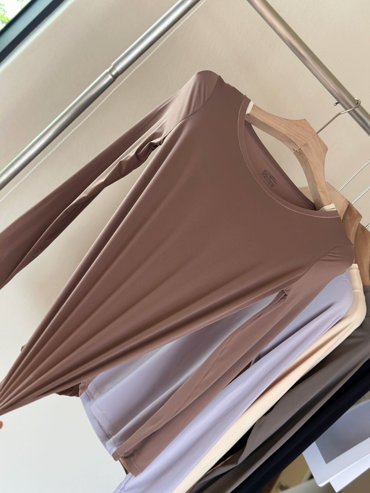 瞬间排湿气,平衡秋冬温感,当身体出汗后水分蒸发会带走热量,所以贴身衣服要足够透气。这件肌底衣的透气水平真的绝了 这款肌底衣虽然看起来薄薄的,但保暖性还非常牛,摸起来还自带温感,刚刚好的舒适~