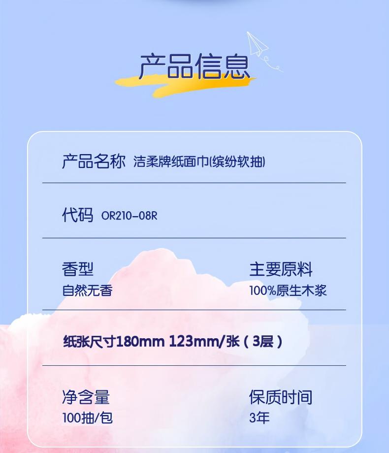洁柔缤纷软抽64包 抽纸3层100抽【整箱】