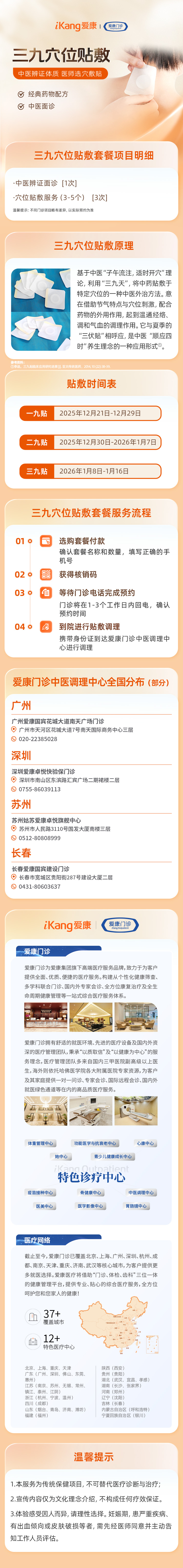 爱康中医门诊 三九穴位贴敷套餐(到院诊疗服务)