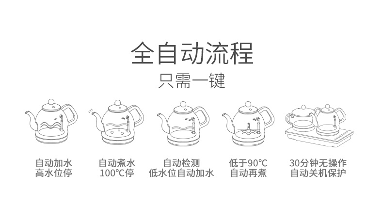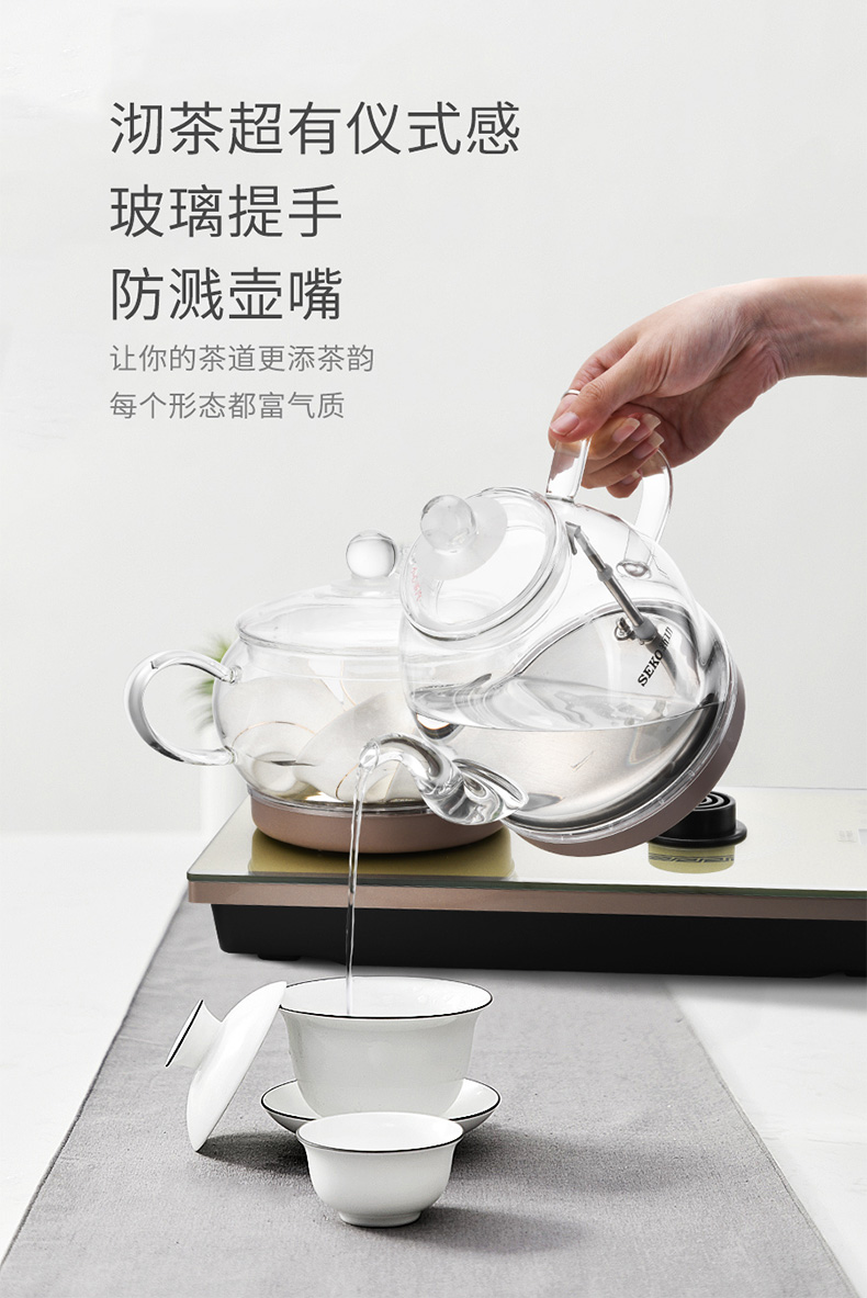 永利汇W7全自动底部上水玻璃电热水壶茶台烧水壶一体泡茶专用电茶炉