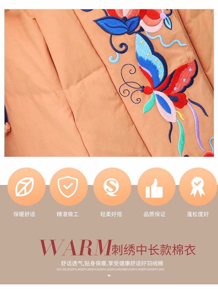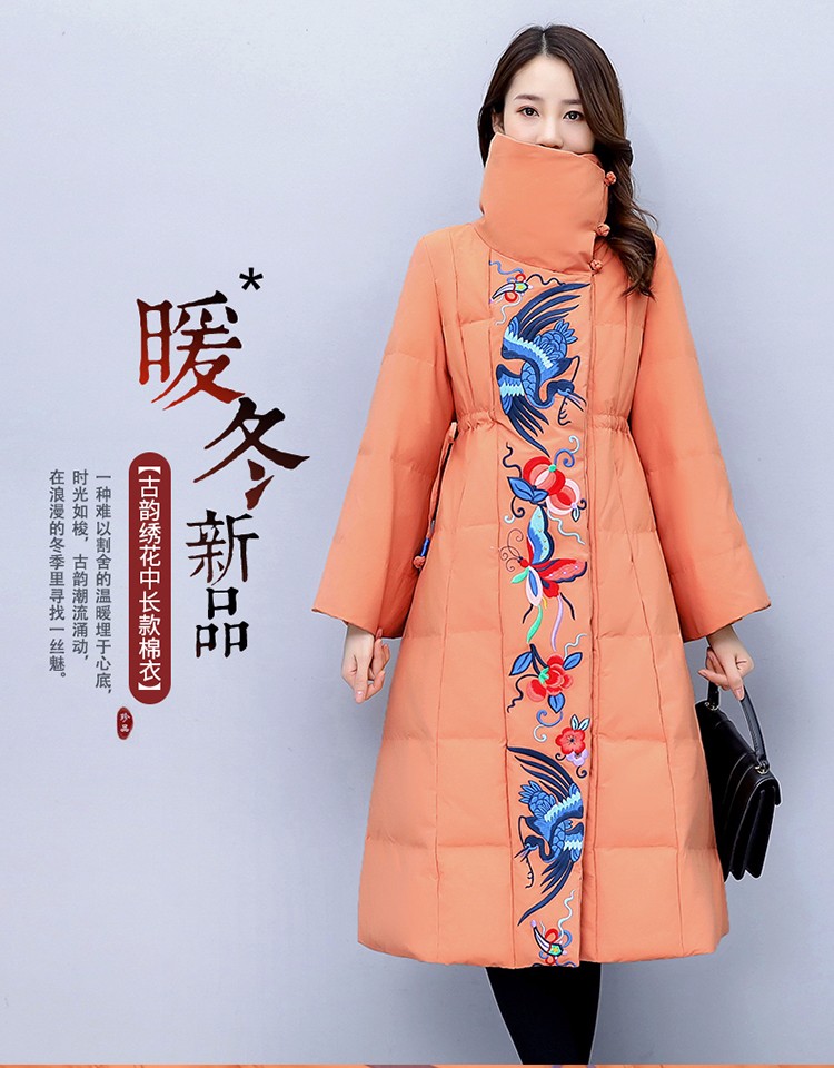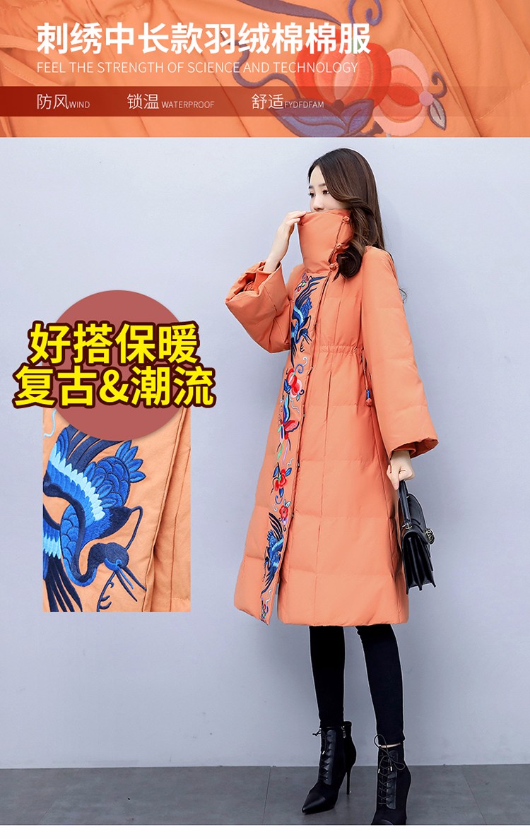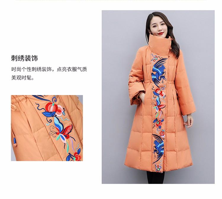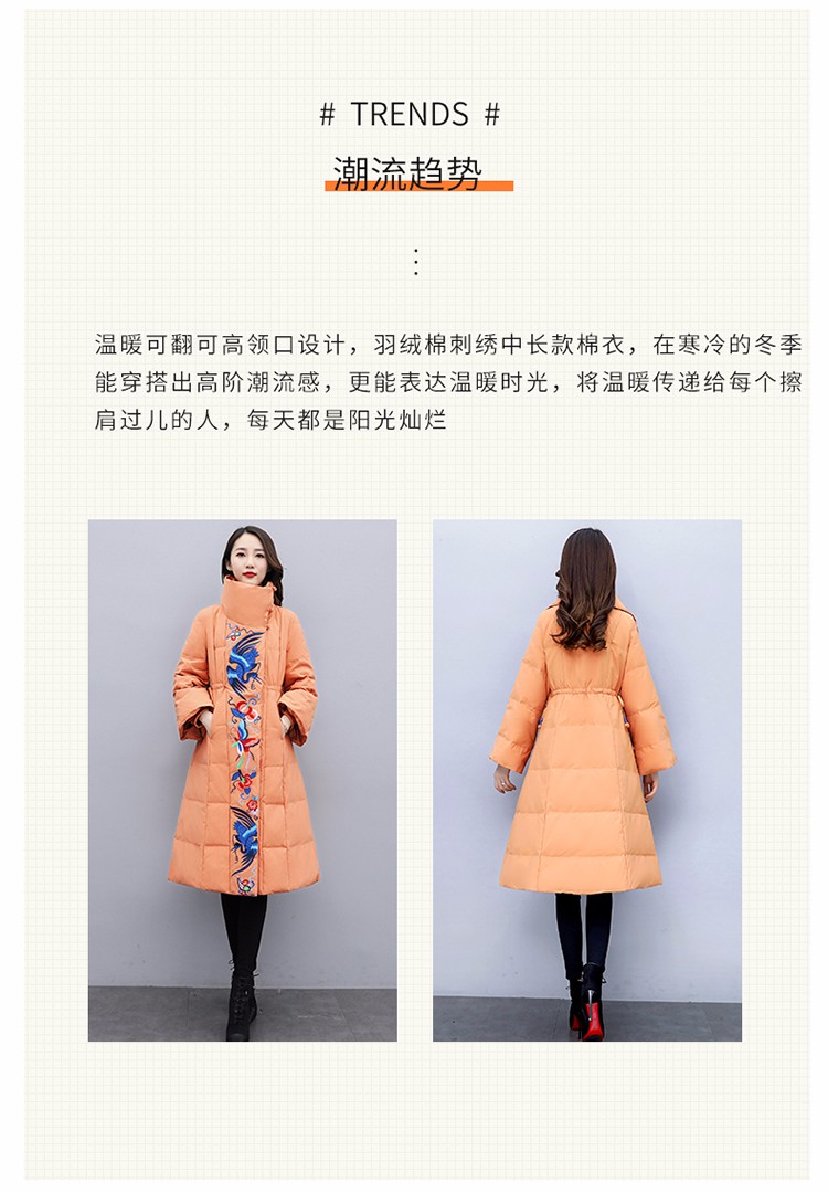 WZNH-MJ2102新款时尚优雅气质宽松绣花中长款保暖舒适棉衣