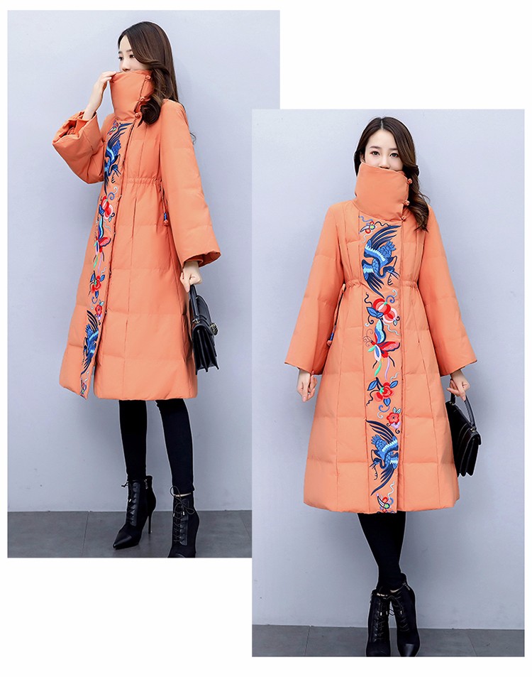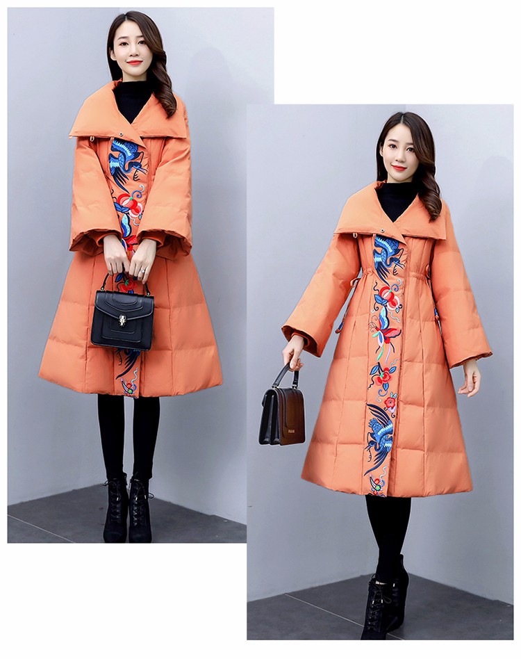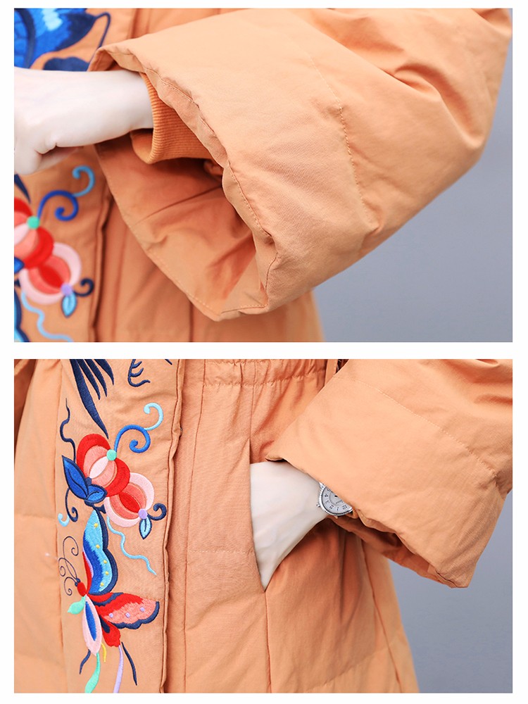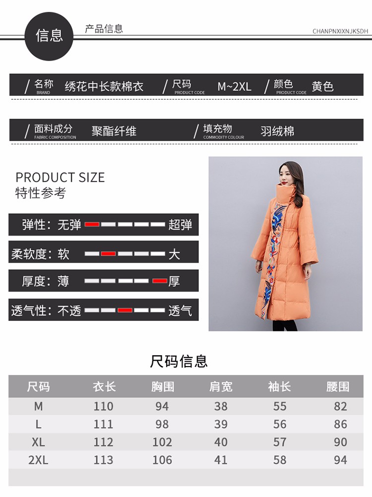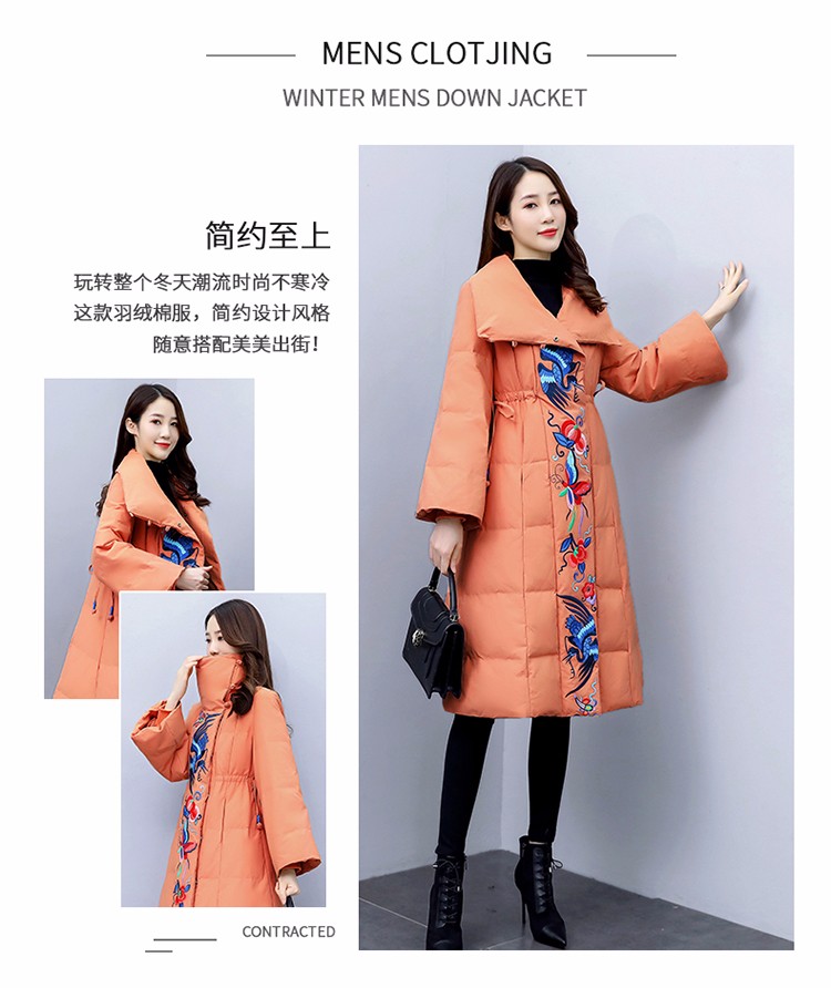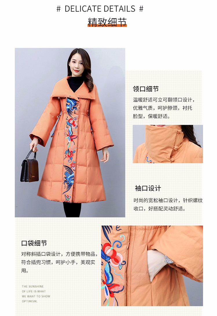 WZNH-MJ2102新款时尚优雅气质宽松绣花中长款保暖舒适棉衣