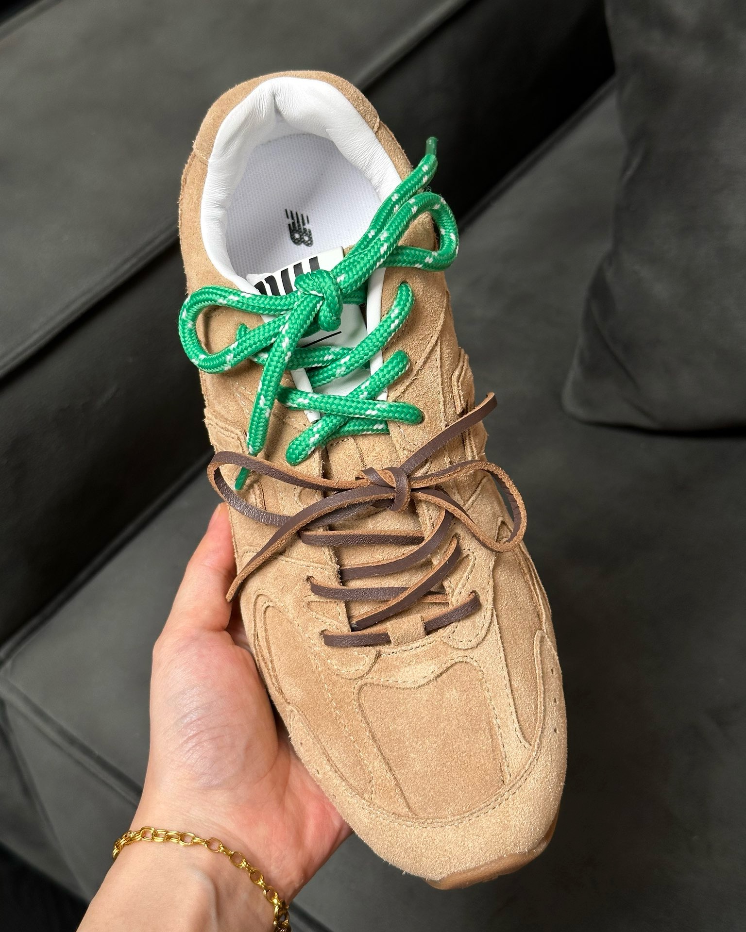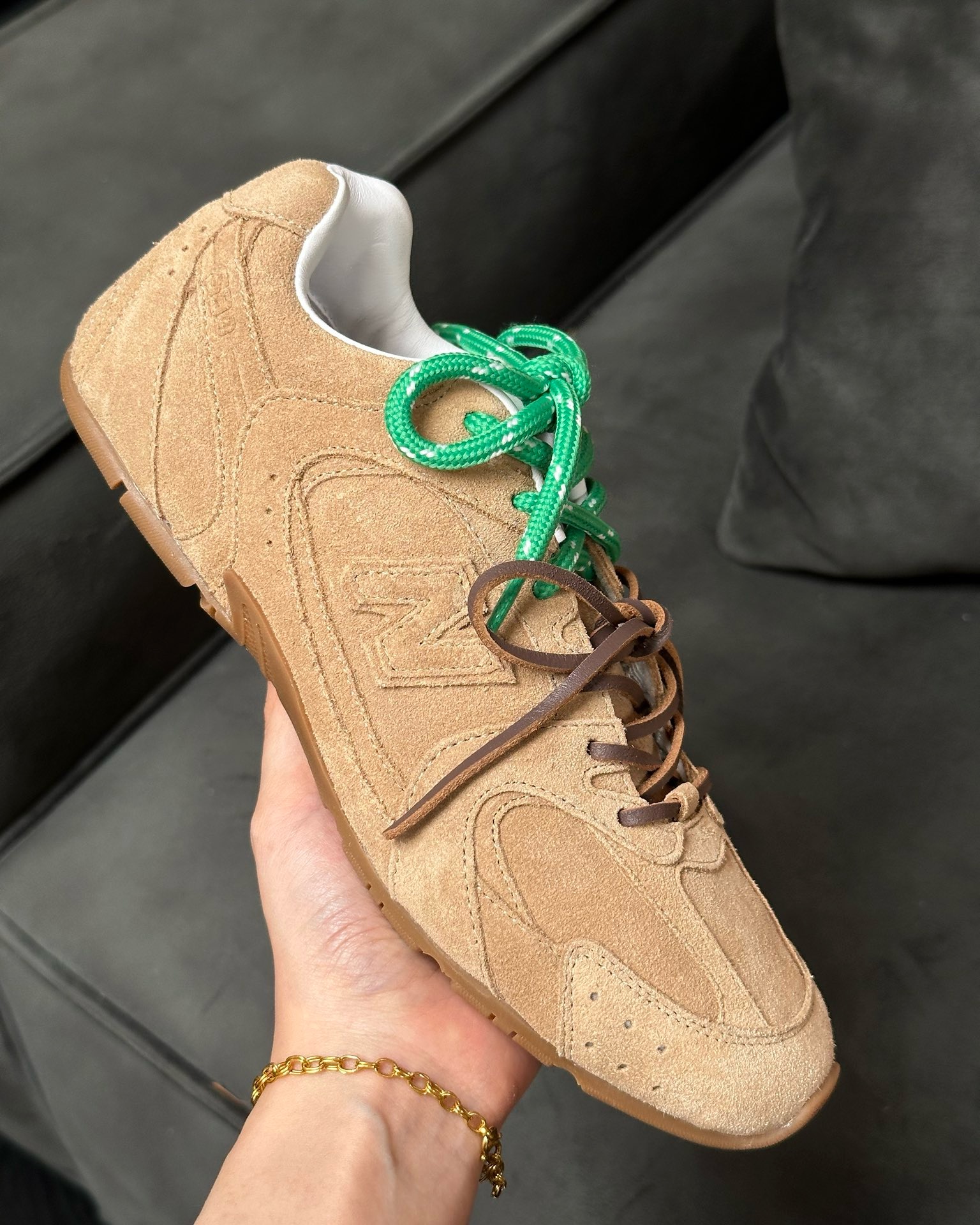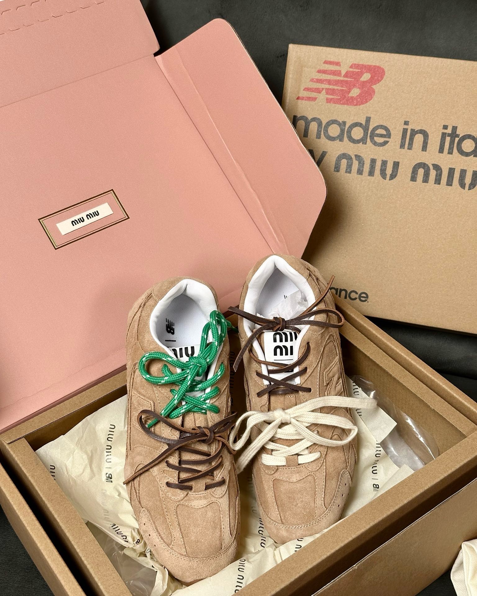 缪缪大秀上爆出的这双与NB联名款运动球鞋后,