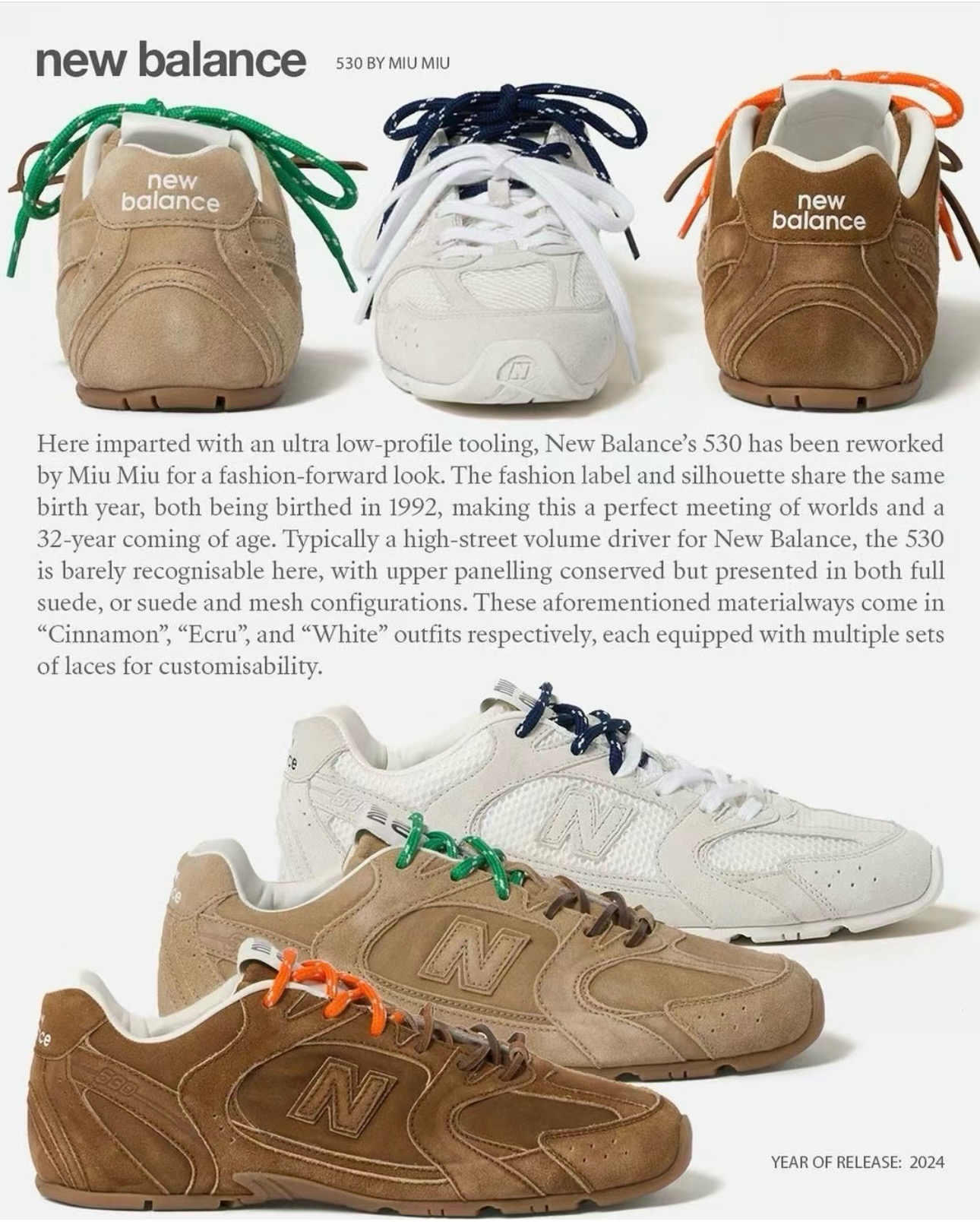 专柜原盒!2024蕞新 大佬联名 全麂皮款 Miu x NB缪缪联名全麂皮款530运动鞋