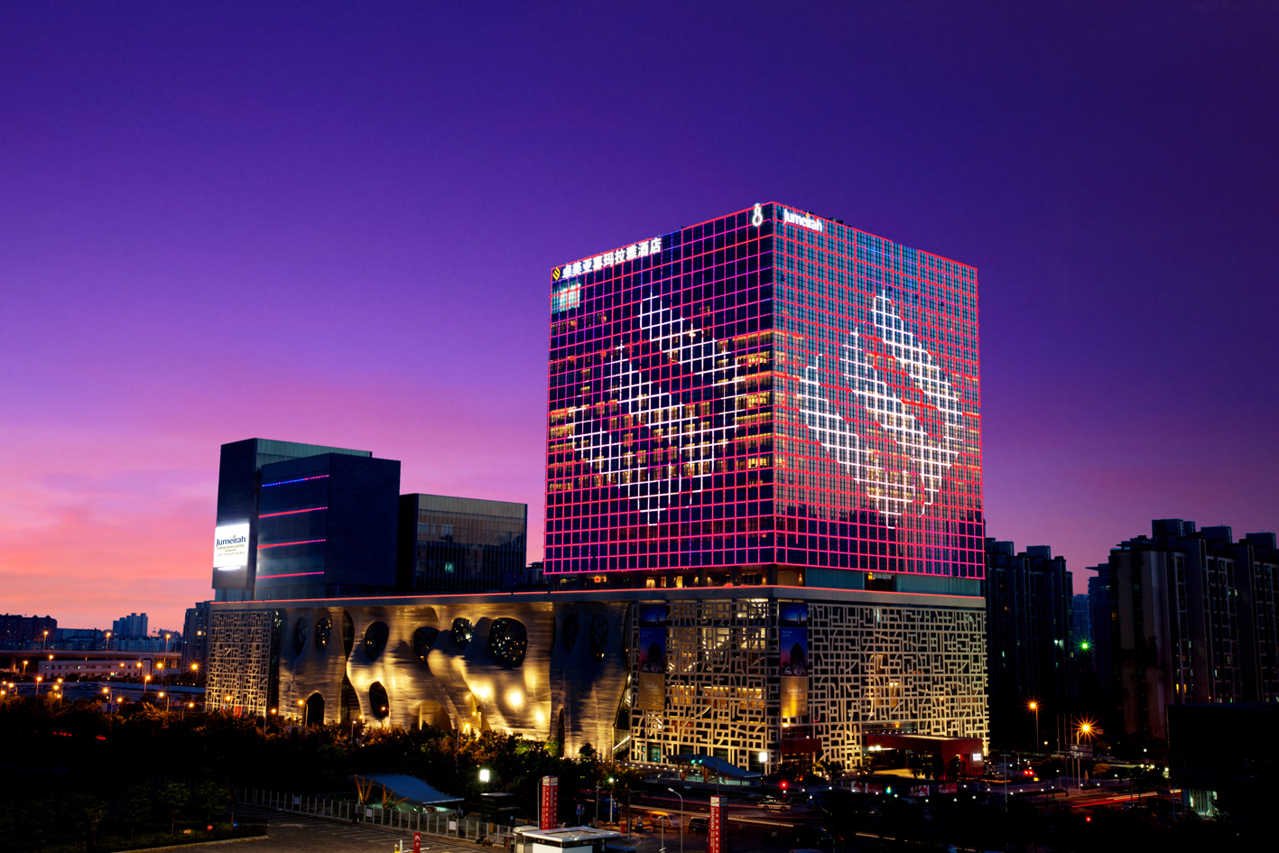 酒店外观由曾主持设计西班牙巴塞罗那体育馆和洛杉矶现代美术馆的国际著名建筑大师矶崎新先生设计,而绝美的室内设计则由曾经成功打造另一地标建筑迪拜帆船酒店的KCA国际担当。