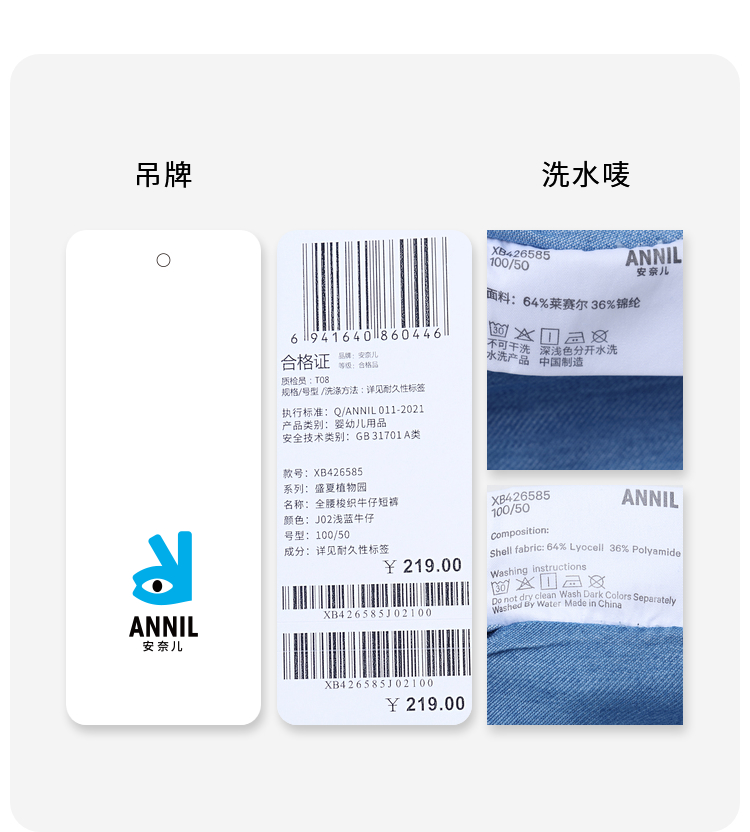 男童抗菌防晒冰牛仔短裤裤子新款安奈儿童装实体店同款XB426585