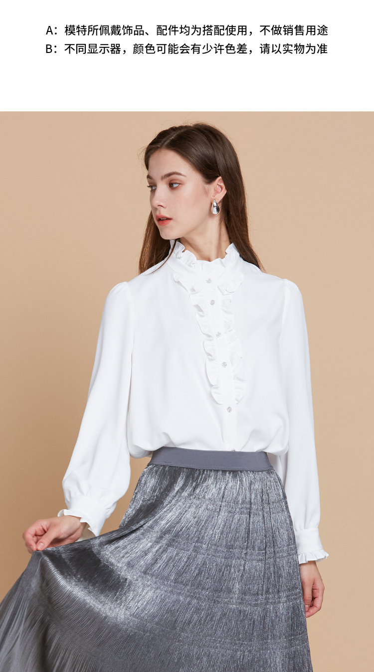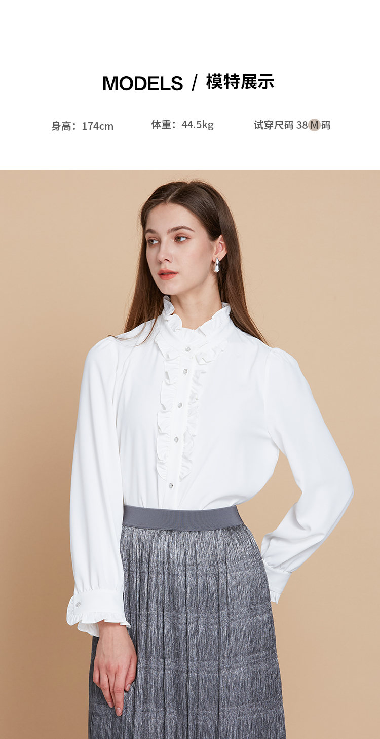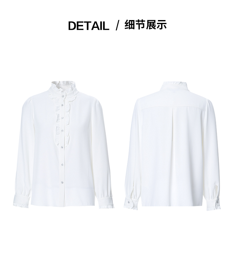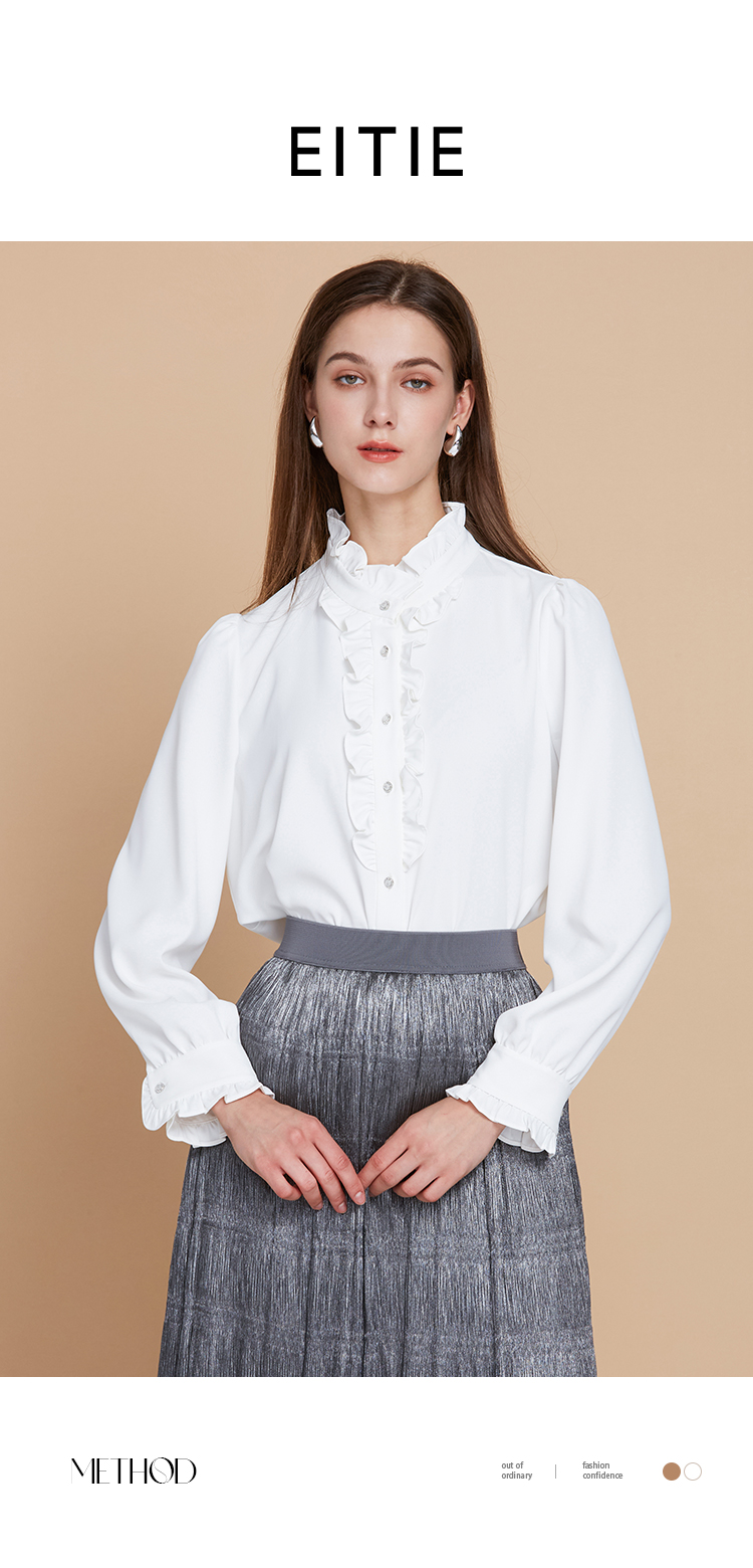 EITIE爱特爱复古宫廷风木耳边立领显瘦百搭白衬衫2025秋季新款C2513816