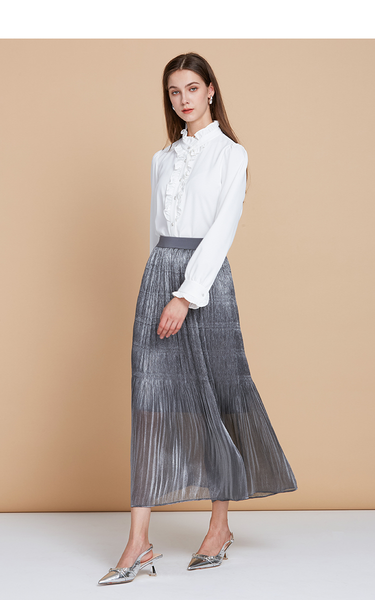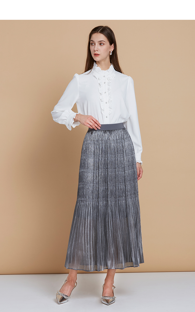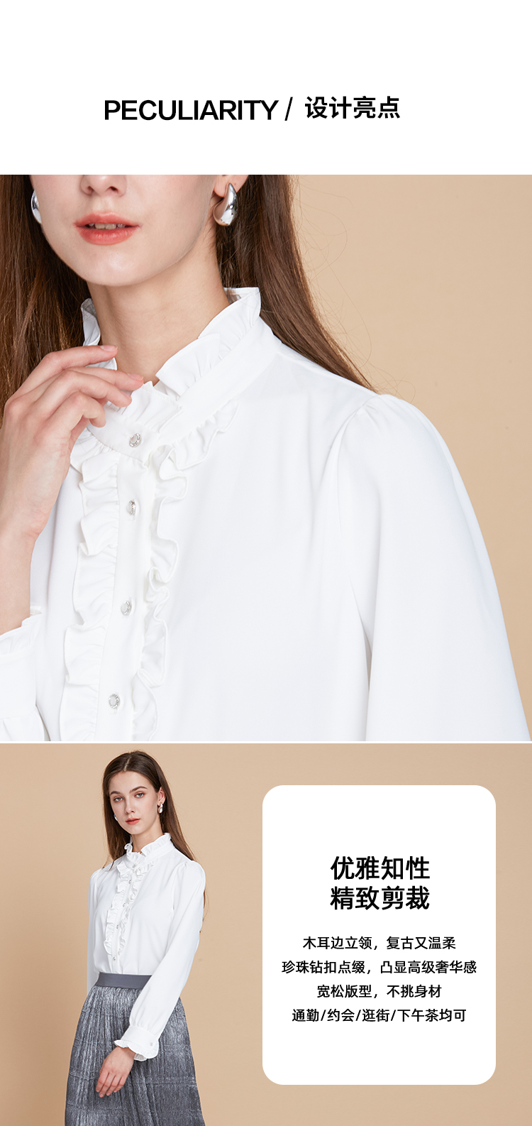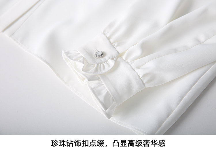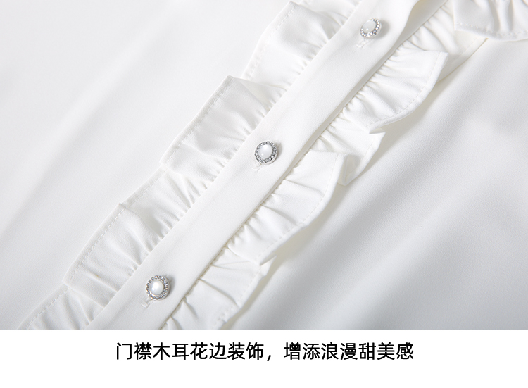 EITIE爱特爱复古宫廷风木耳边立领显瘦百搭白衬衫2025秋季新款C2513816