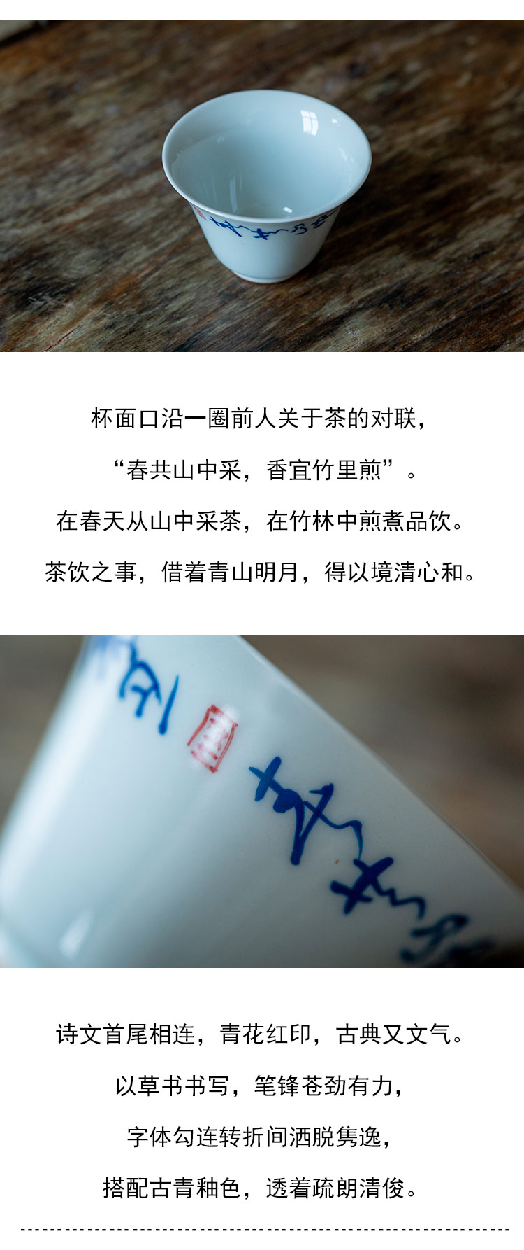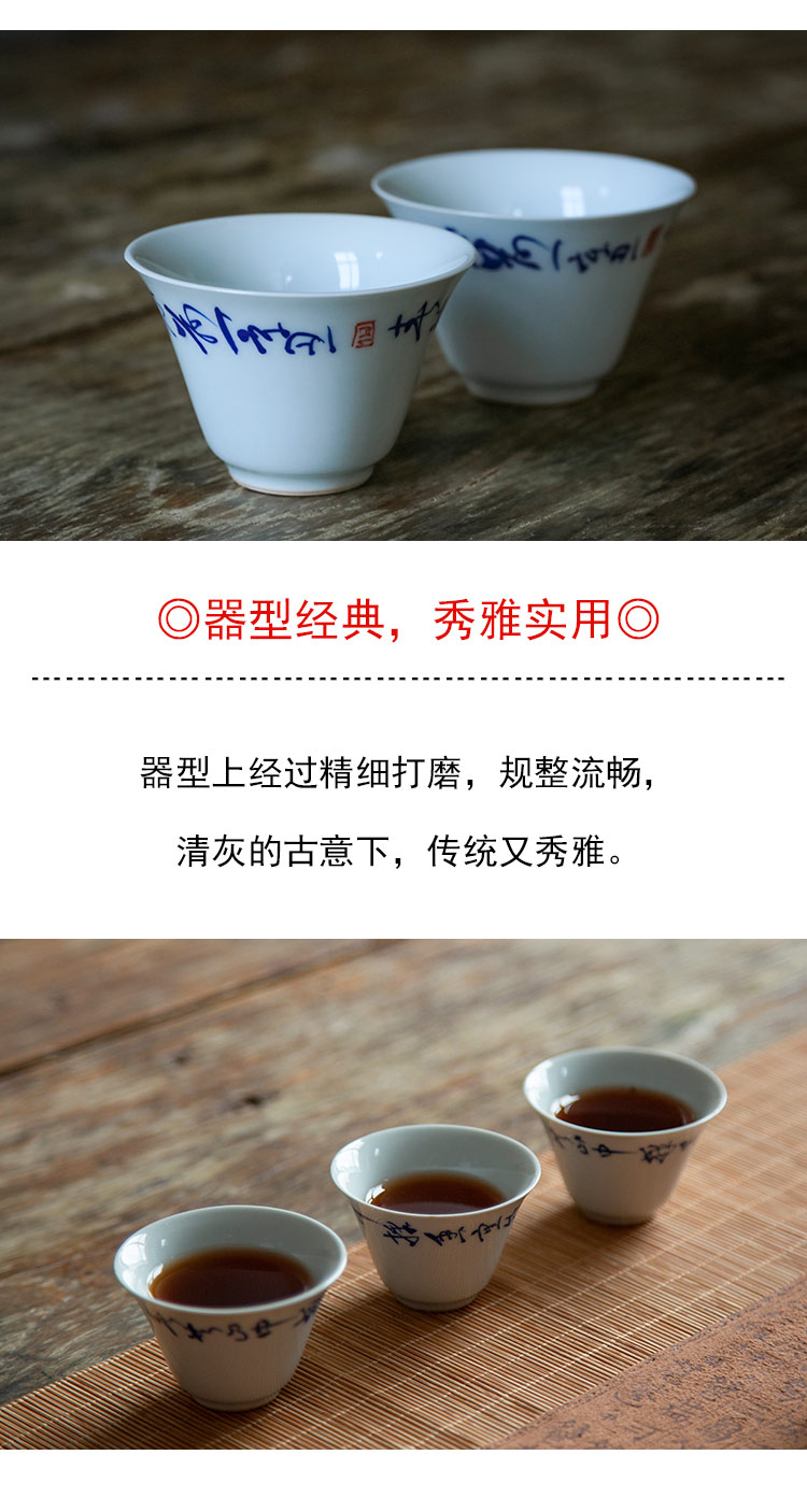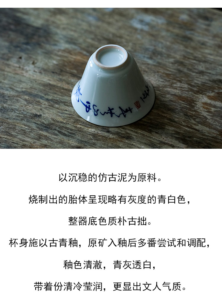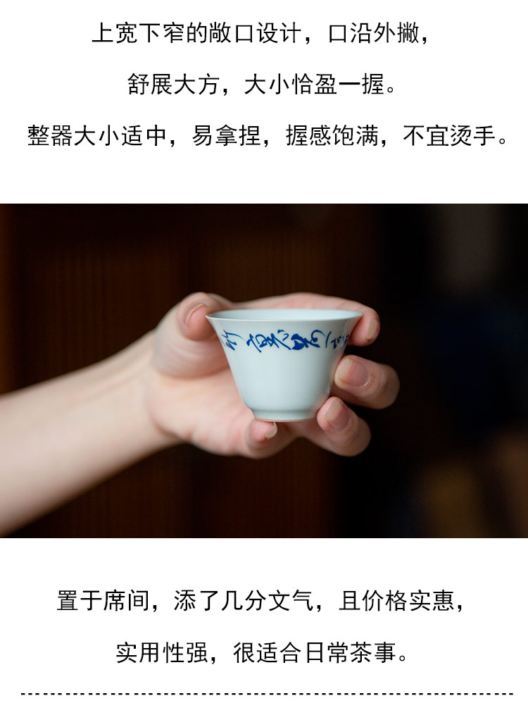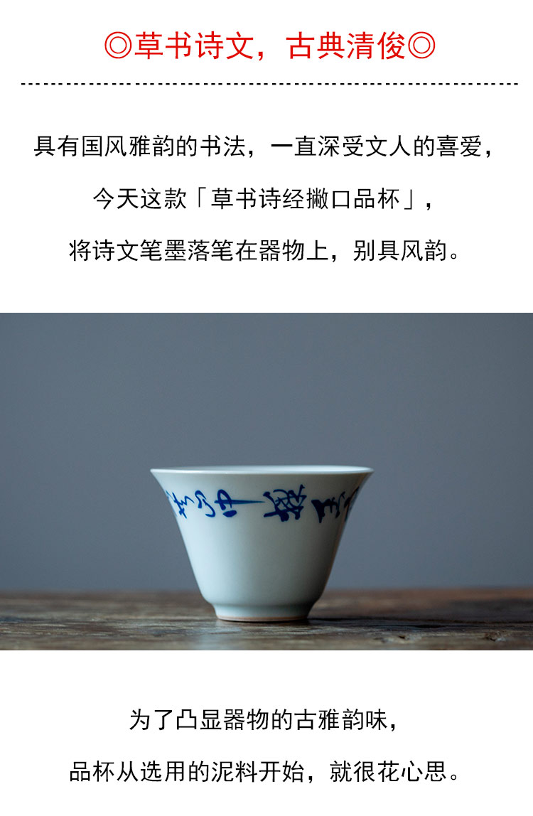 茶香记 草书诗经撇口品杯30ml古青釉敞口杯陶瓷茶杯古朴雅致茶具
