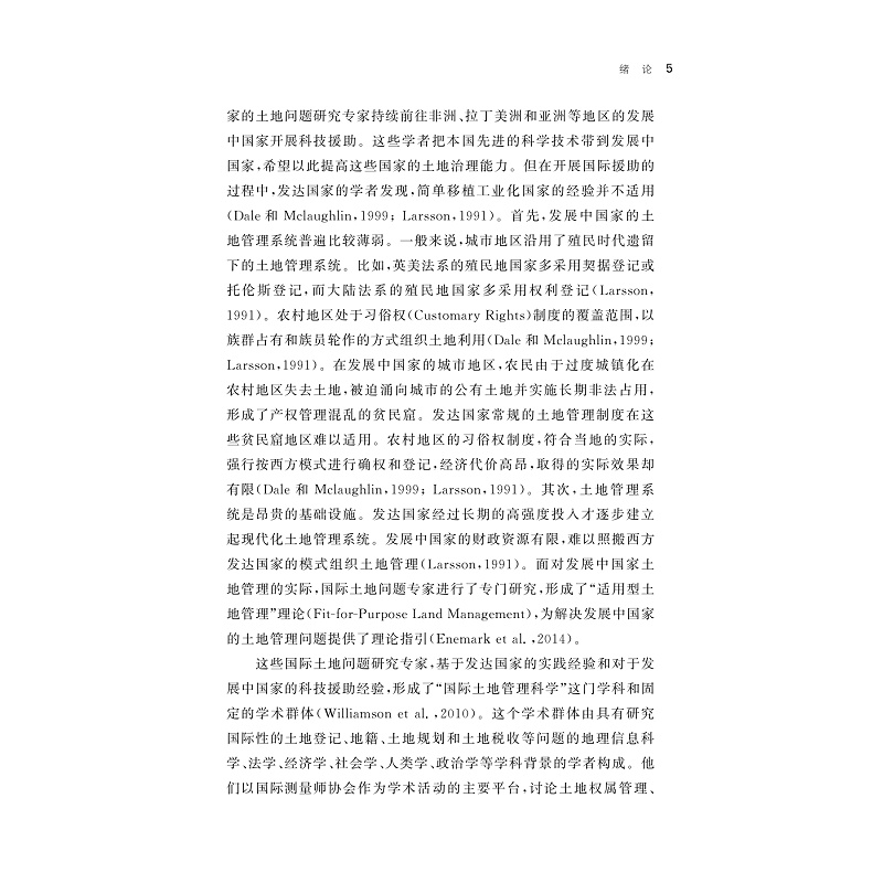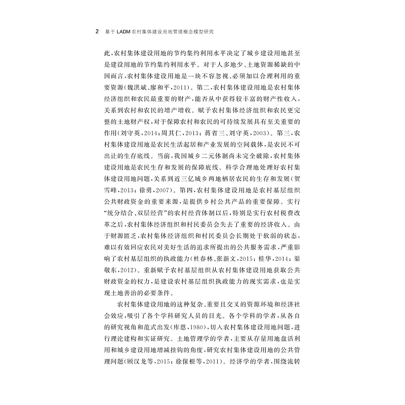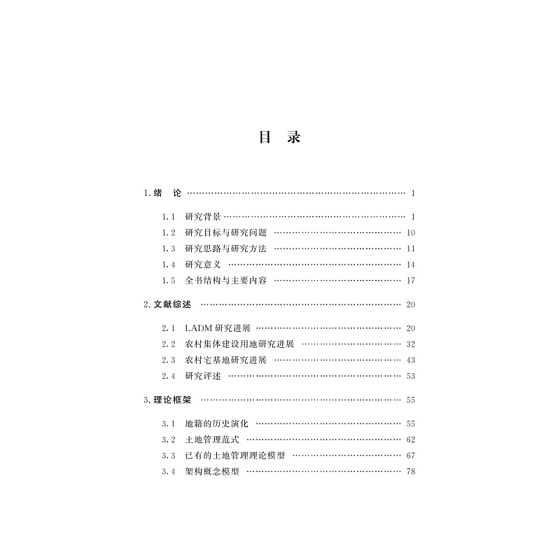 本书的研究目的是揭示农村集体建设用地管理制度的构成要素、组成结构和动态变化等动力学机理,应用地理信息科学的系统论研究范式和面向对象设计方法,提出符合 “土地管理领域模型 ”(The Land Administration Domain Model,LADM)规范要求,建立适合我国农村集体建设用地管理需求的概念模型。在系统第一层次,该模型包括了土地权属、土地用途和土地价值三个系统要素。在系统第二层次,该模型包括了 “人-权 -地 -事 ”四个系统子要素。根据法律和技术约束,这些系统要素形成了稳定的系统结构和动态变化关系。乡土中国长于道德文化而疏于法制技术,技术治理薄弱制约了现代化进程,本研究可为实现工具理性导向的土地数字管理提供可操作的政策工具。