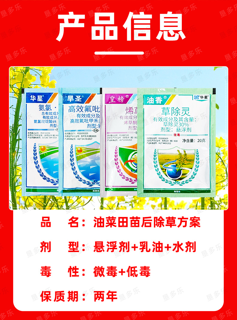 华垦油菜田苗后除草方案油菜苗后专用除草剂草除灵内吸老牌子正品