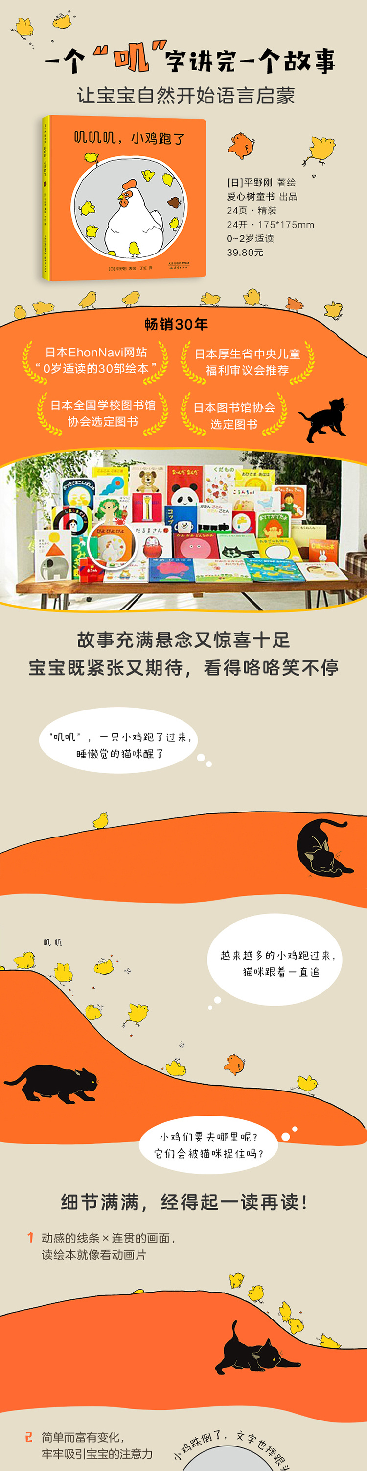 ♧ 长销30年的亲密互动绘本,小鸡找妈妈×小猫找妈妈两条线索交织,给宝宝双倍的***感!