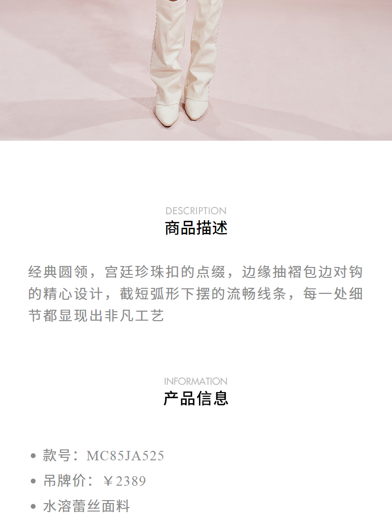 玛克门店发货:MAXRIENY蕾丝截短外套(货号:MC85JA525)