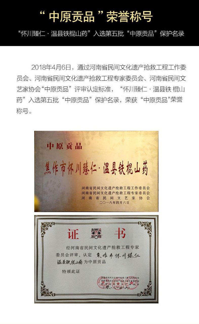产自温县主产区,这里有3000多年种植铁棍山药的历史——黄河之北,太行山、王屋山以南,山南水北谓之阳,属"两阳之地",也许正是因此才成就了铁棍山药的特有功效!