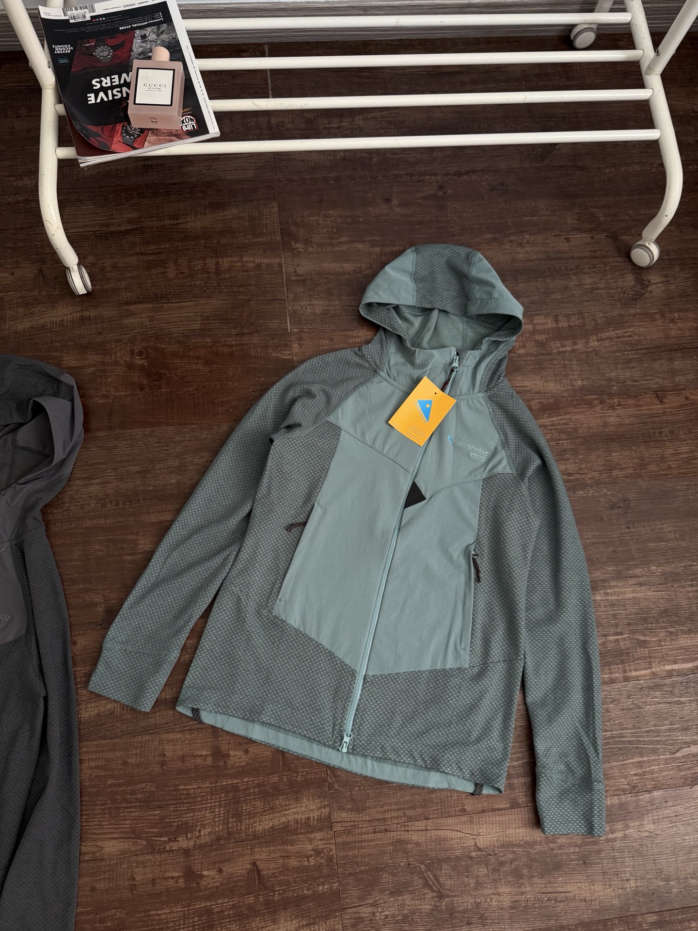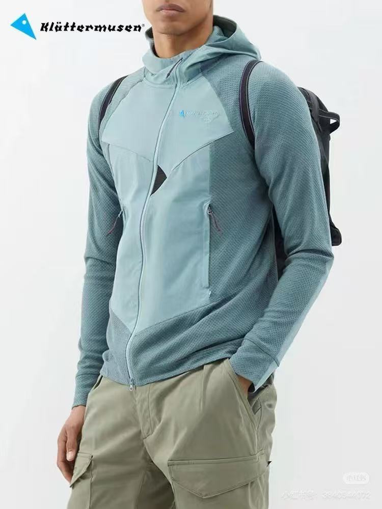 拼接面料设计!核心区域抗风锁温!其余部位蜂窝Norna面料!快速吸湿排汗!便于加强户外活动的续航能力!肘部区域加强耐磨设计!鼠家经典的斜拉链设计!手插口袋山系特色高位设计!避开腰带肩带的重叠干扰!