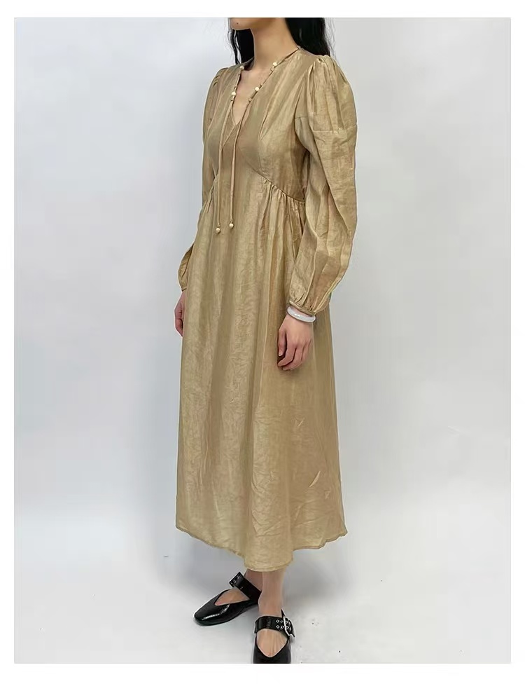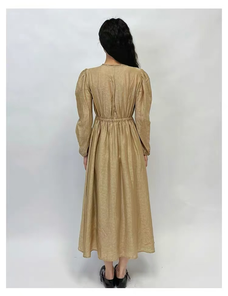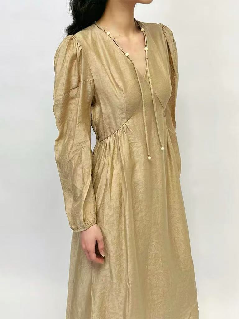 中秋大力度清仓~(不支持退)NO退~{ 连衣裙系列 }83%天丝暗纹V 领提花设计感连衣裙24092-喜出