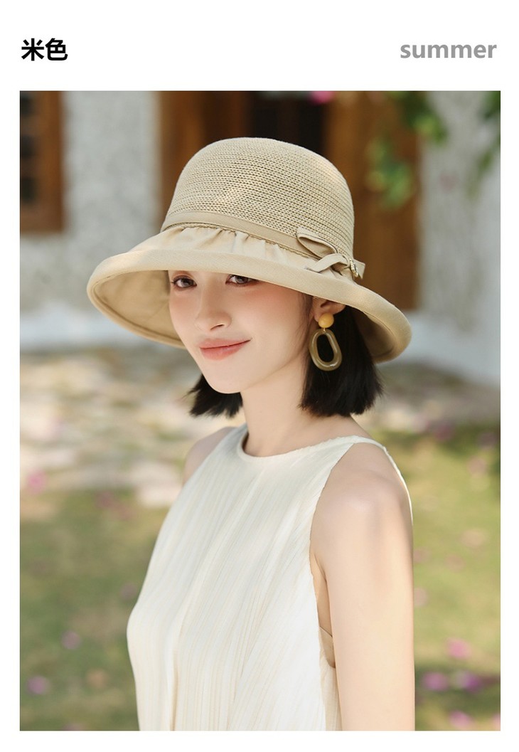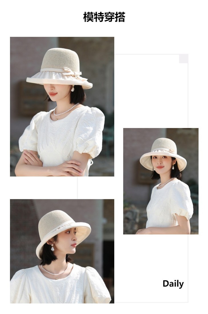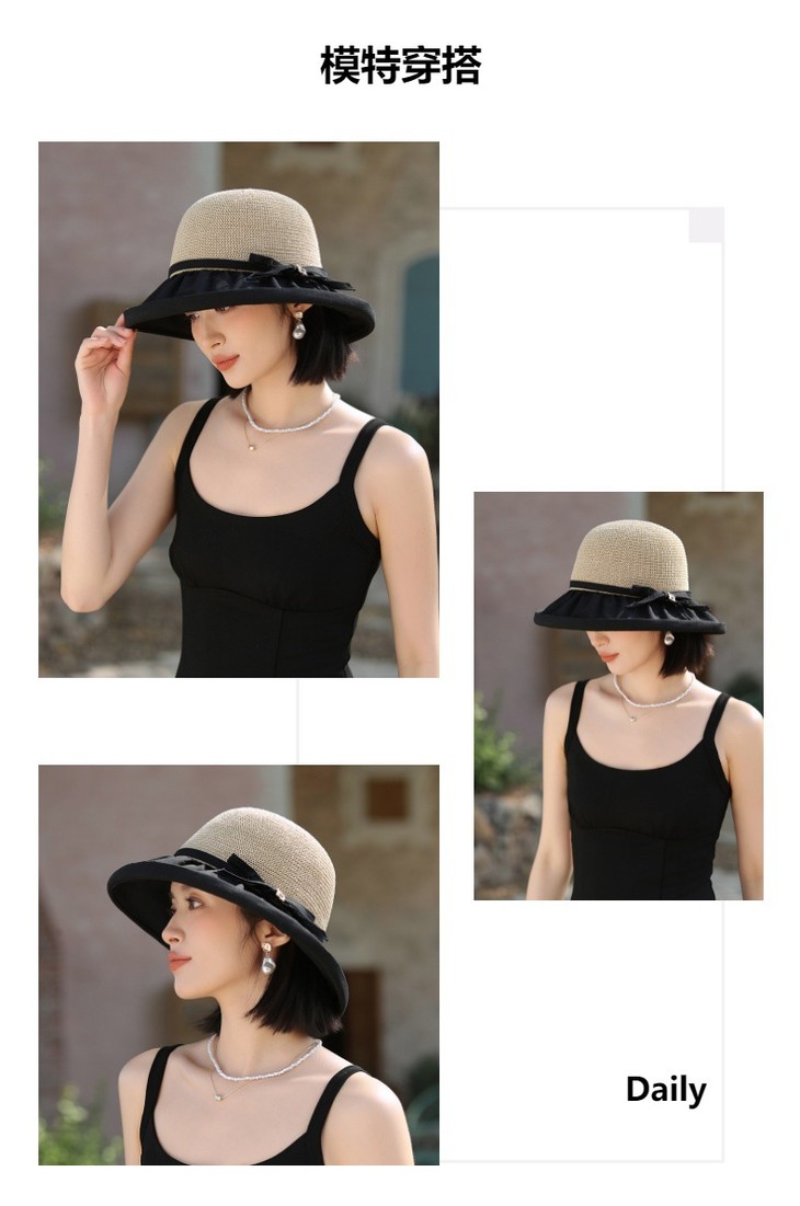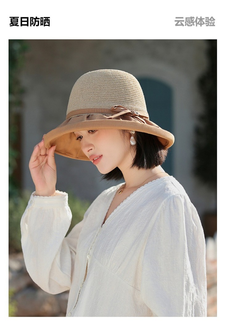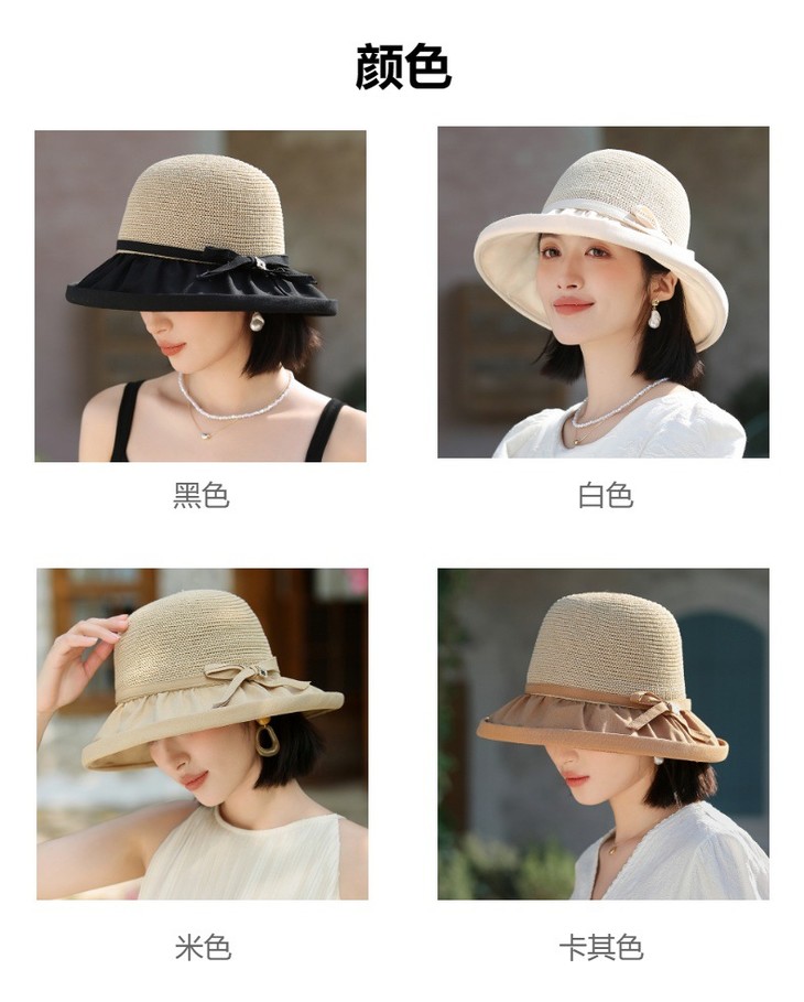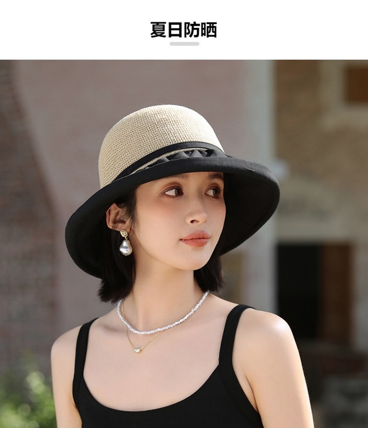 气质女神韩国细草编拼接渔夫帽,减龄防晒遮阳草帽JC-M2954