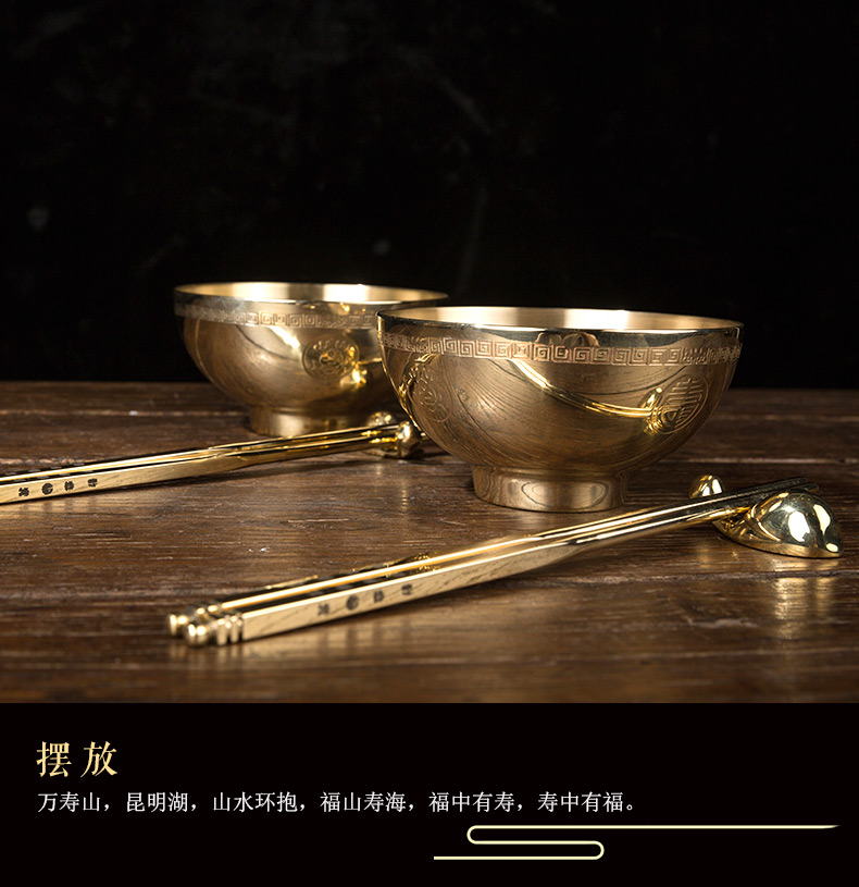 朱炳仁铜 抑菌铜碗饭碗 万寿无疆寿宴套装 餐具家居饰品 家用礼品