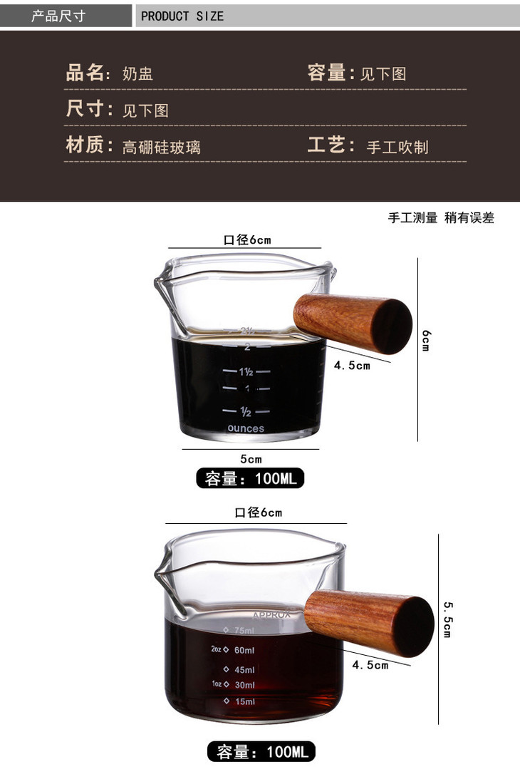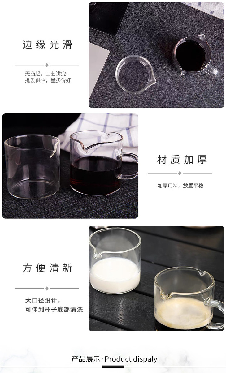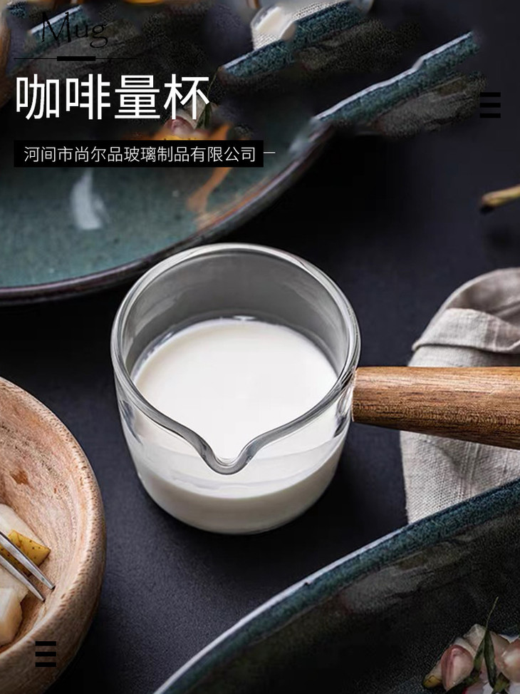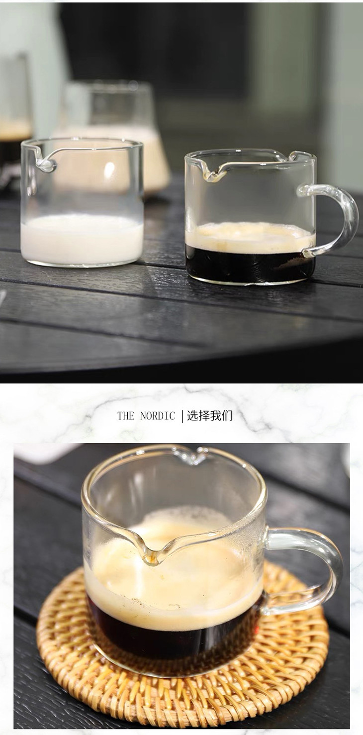 【春艺】直把双嘴奶盅咖啡奶杯 隔热玻璃杯咖啡杯牛奶杯意式 玻璃咖啡量杯-W仓